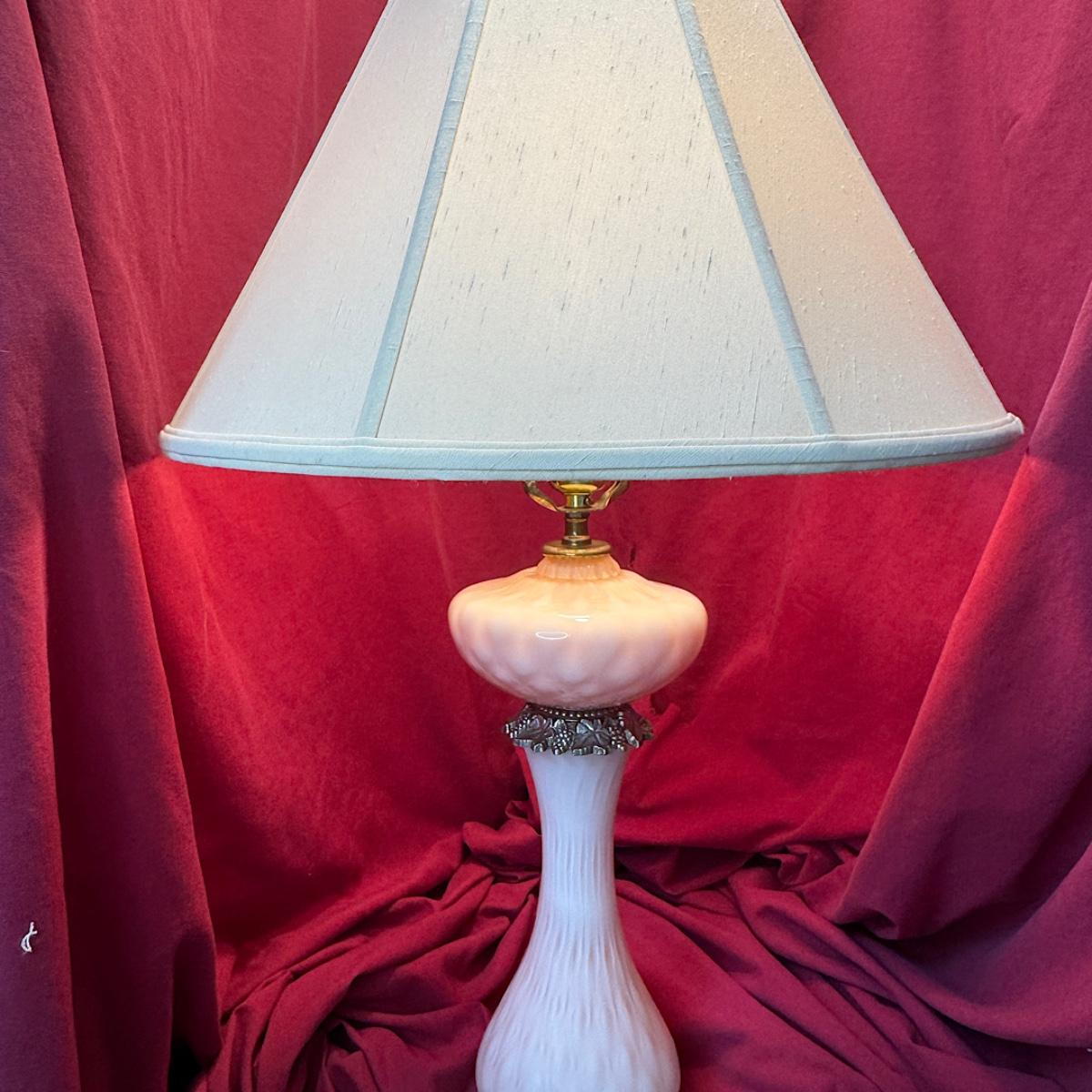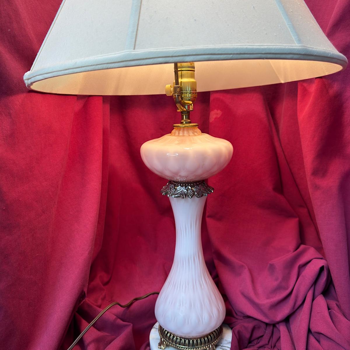 MCM Vintage WILMAR Co Pink Glass Table Lamp w/Marble Base