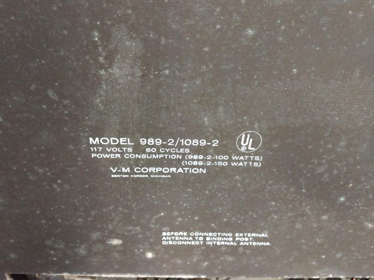 MCM V-M Corporation Model 989-2 Turntable/Radio Console. Appears to be in working condition. Approx. 74 1/2" x 19 3/4" x 27"