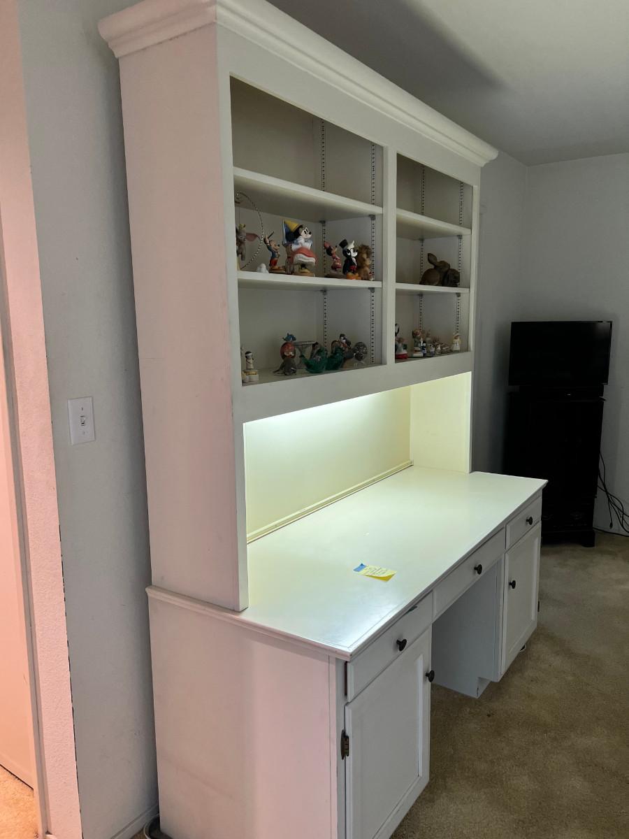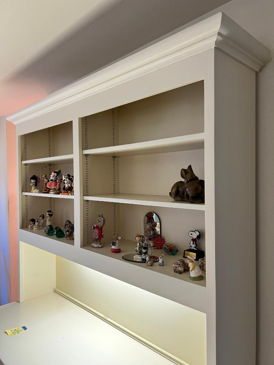 MCM white 2 piece lighted desk bookcase