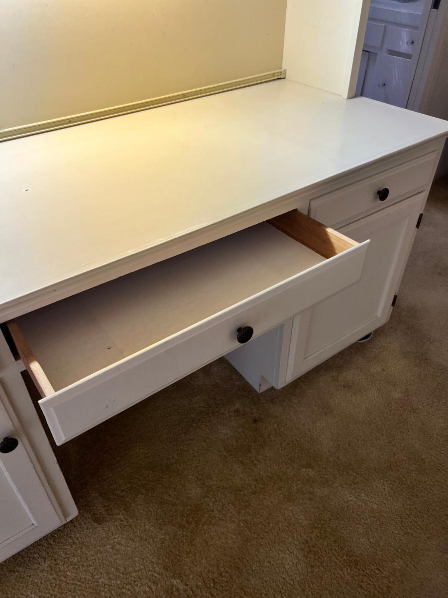 66 X 28 X 8.5' Come apart for easier moving great for desk and shelves for books or display. Pleany of room for supplies in drawers and cabinets, in good condition.
