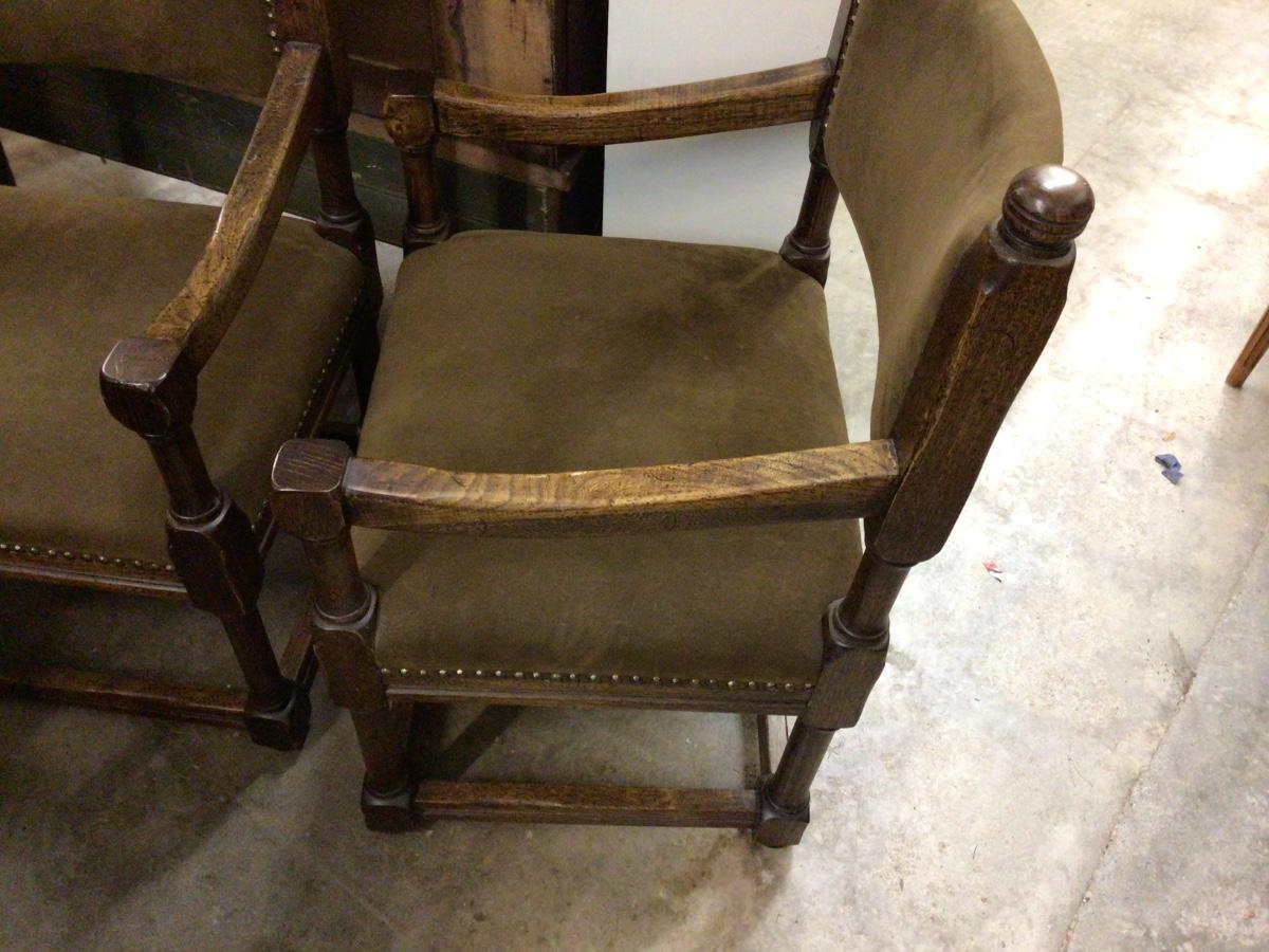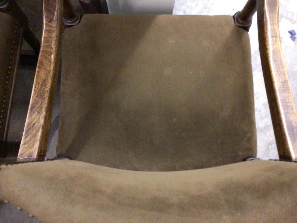 Great set of two MCM wood and brown velvet chair with brass tacks. In really good condition, looks like it was hardly sat in.
