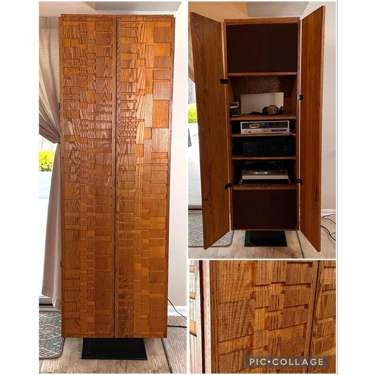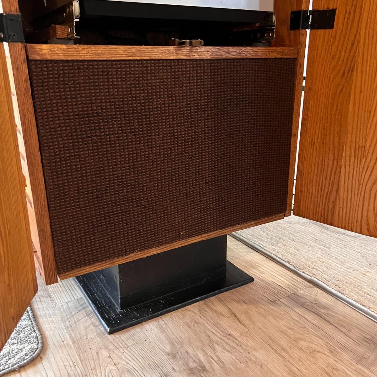 MCM Brutalist Wood Audio Stereo Cabinet Outfitted with Speakers