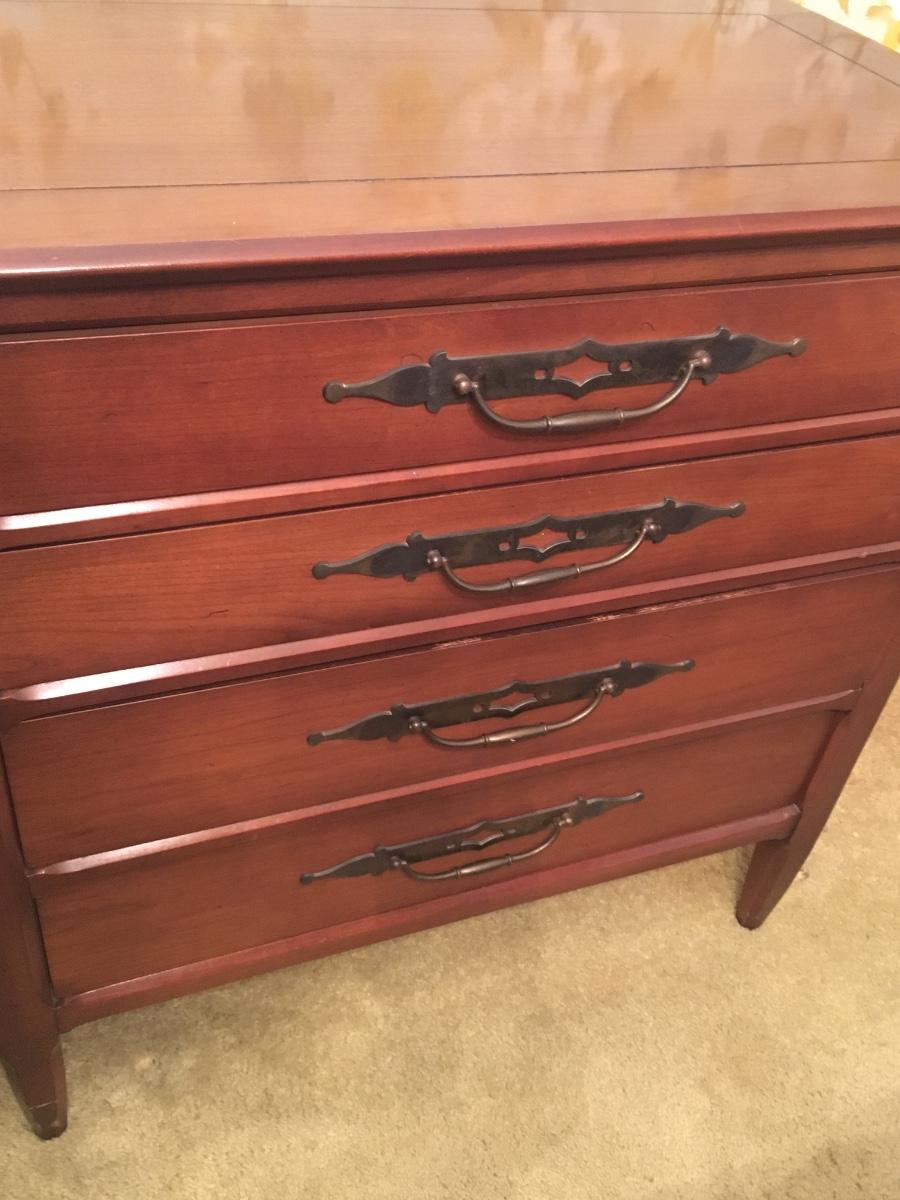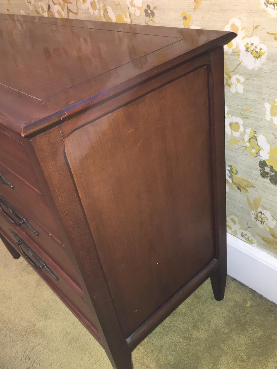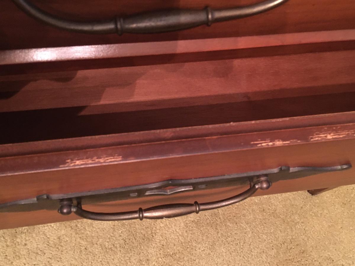 Wood sideboard with 4 drawers and cabiet door that opens for shelf storage