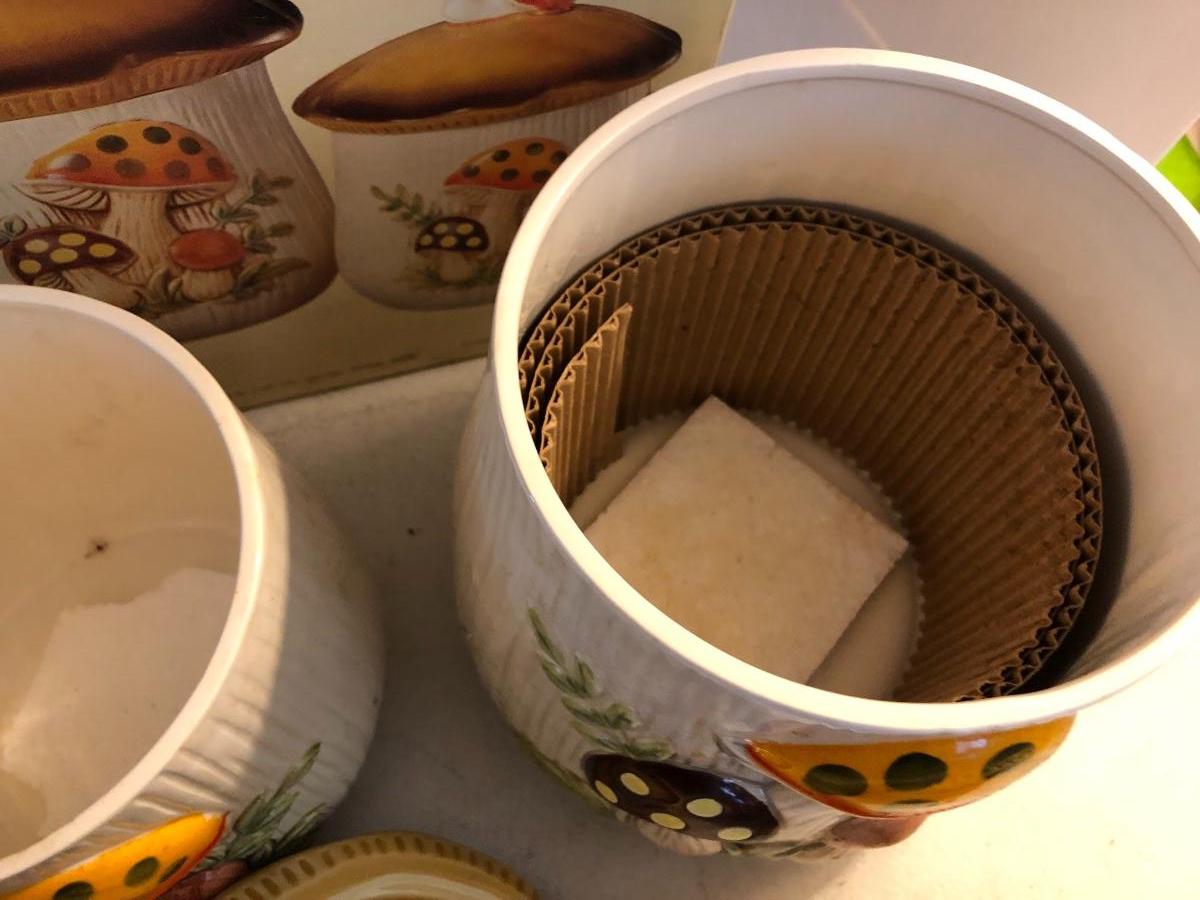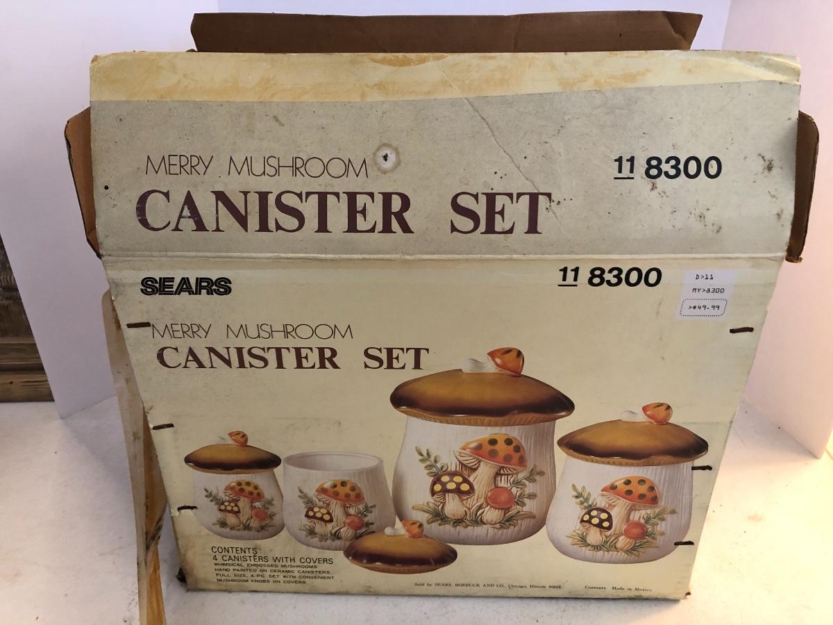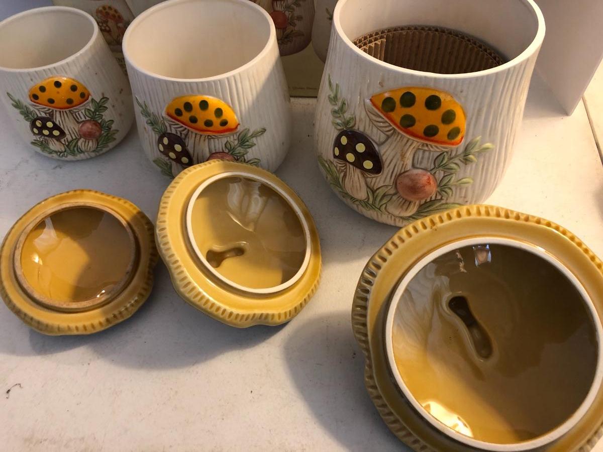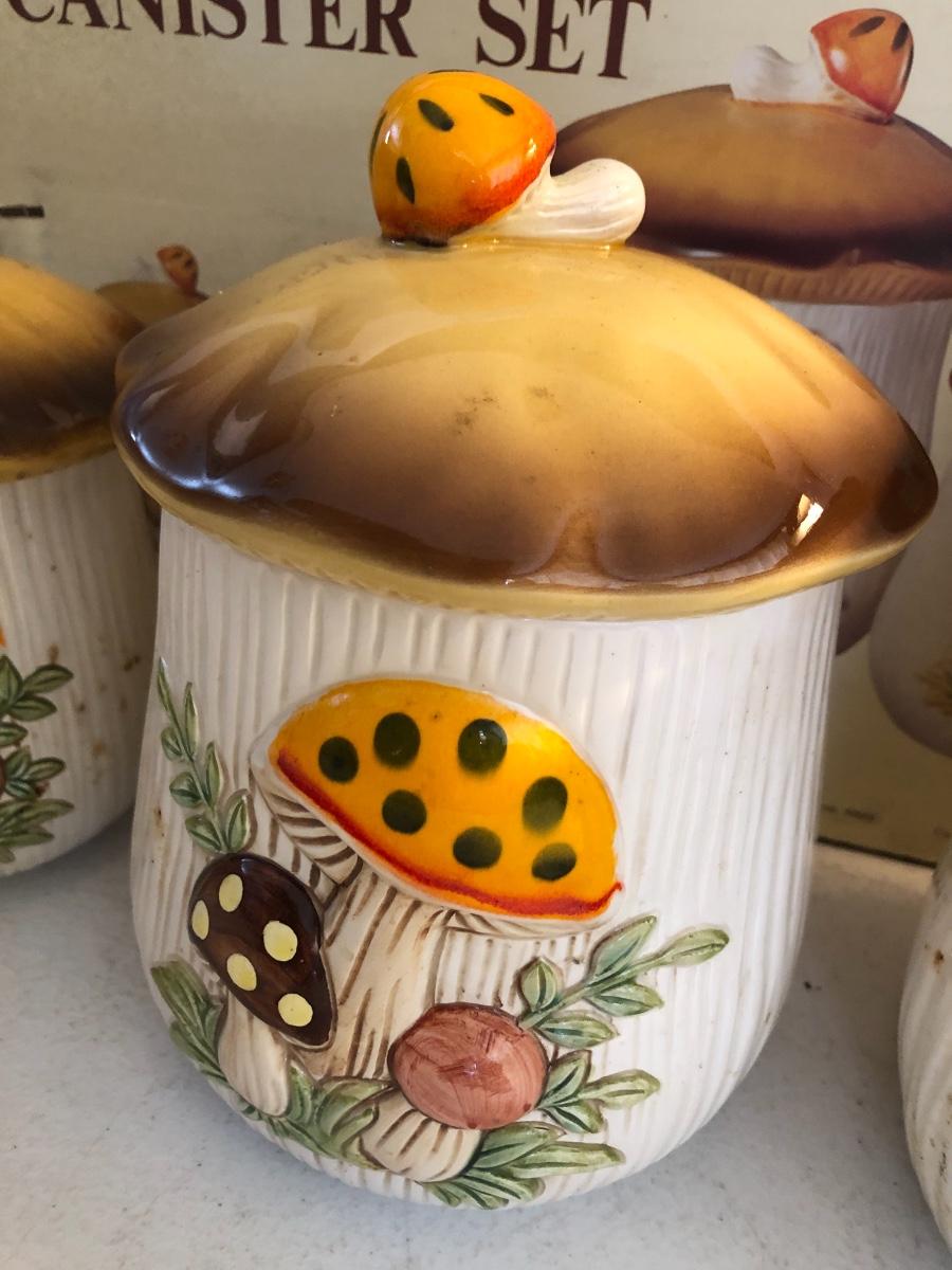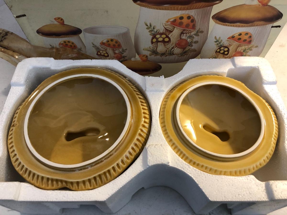 MCM-Three Merry Mushroom Canisters: Small lid Mushroom Broken