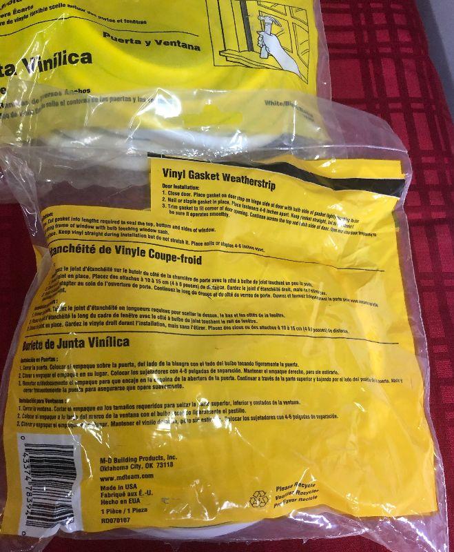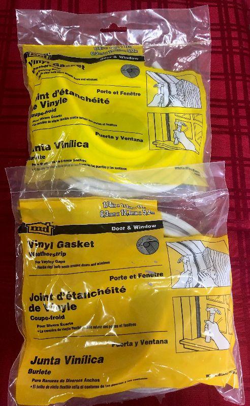 From MD Building Products here are two sealed packages of Vinyl Gasket weatherstrip...for door and window..each is 1/4in x 1/2in x 17ft....New