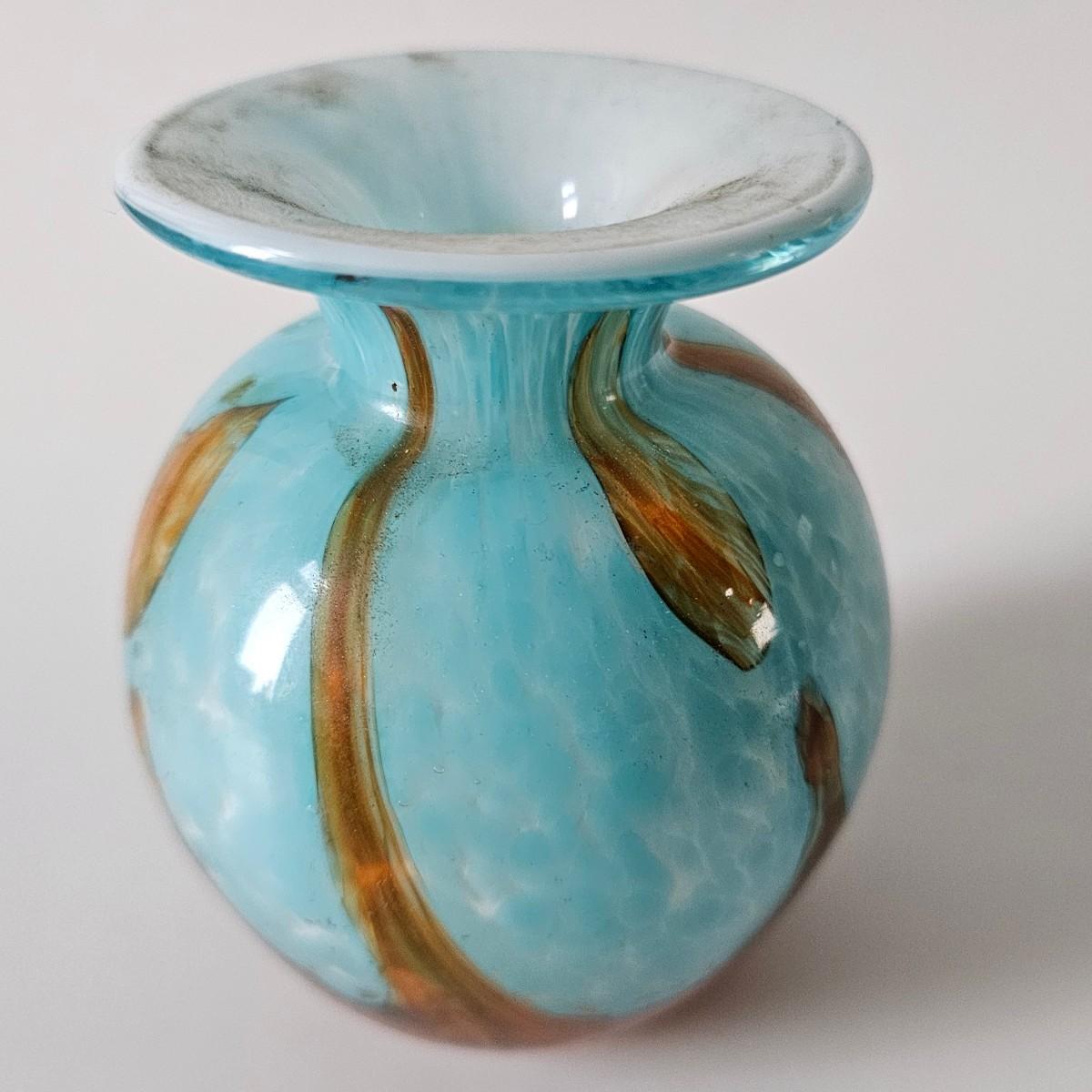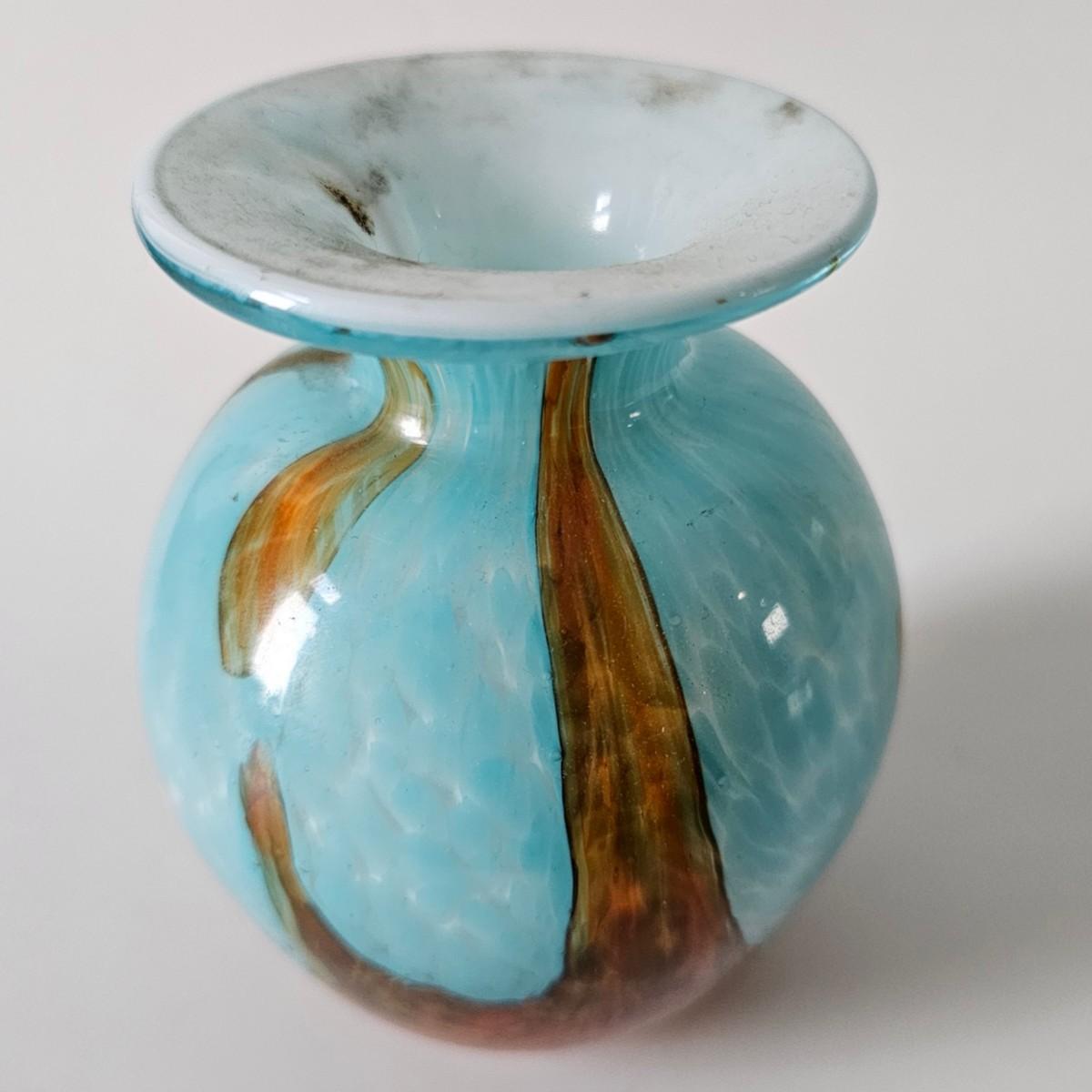 Mdina 'Tiger' Maltese Blue & Brown small Vase or oil/perfume bottle