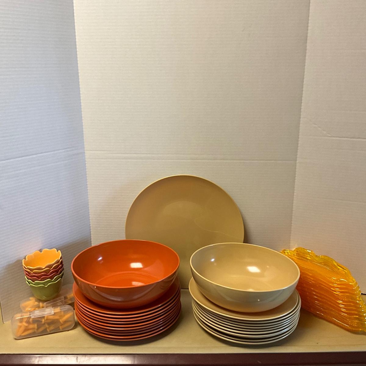 MDR1443 Lot of Orange and Yellow Plastic Melamine Dinnerware