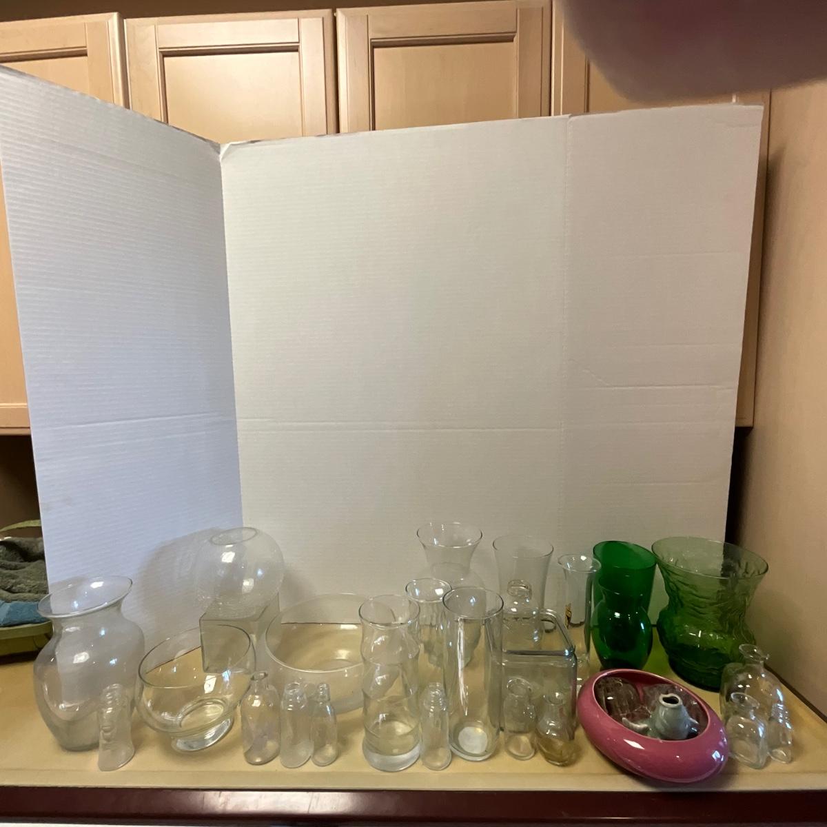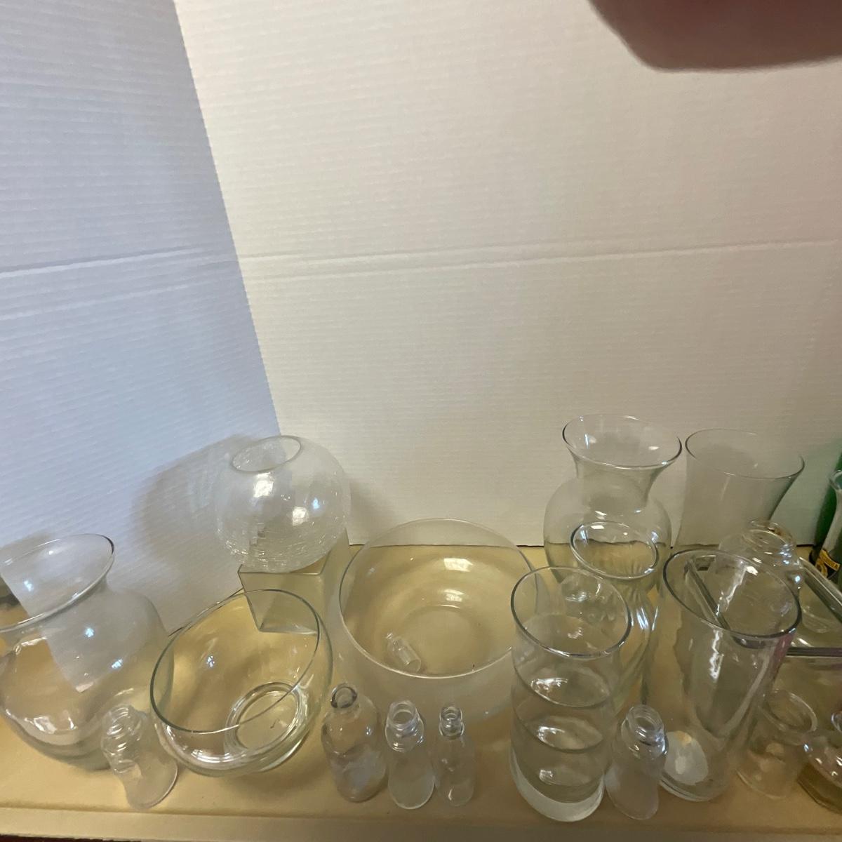 MDR1458 Large Lot of Glass Flower Vases and bottles