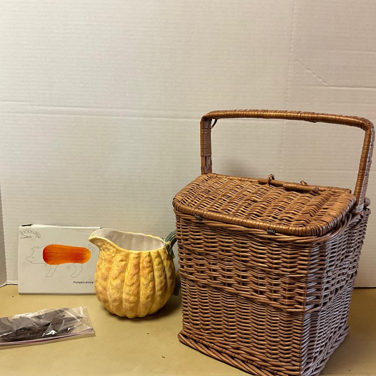 MDR1459 Pumpkin Pitcher with Vintage Basket, Pumpkin Decor