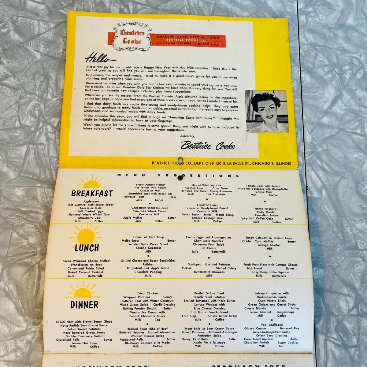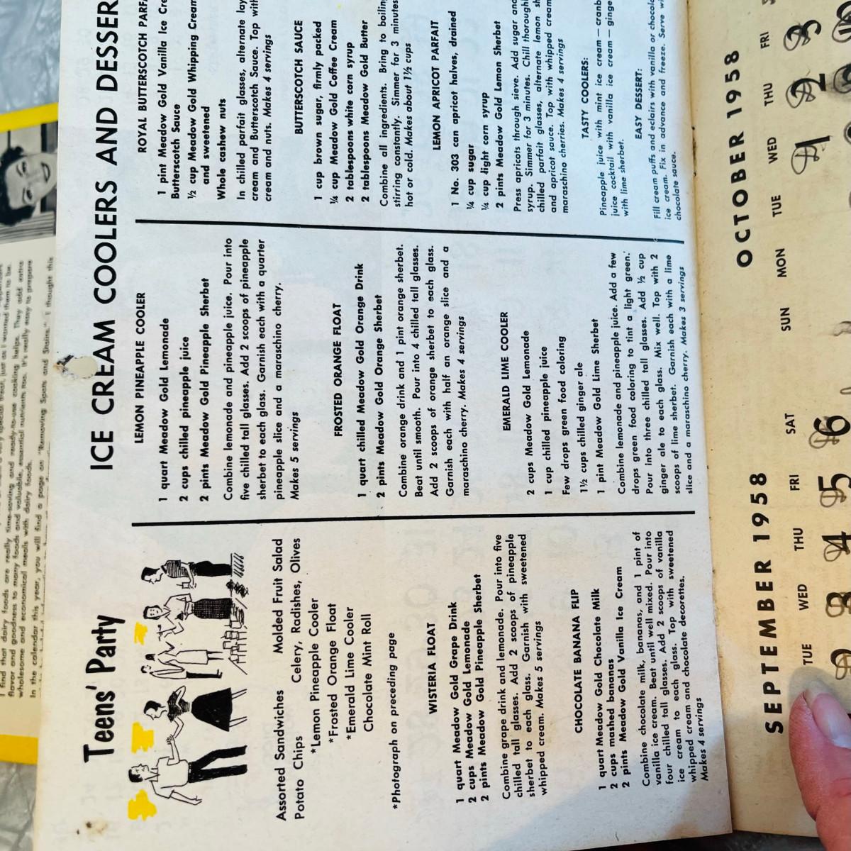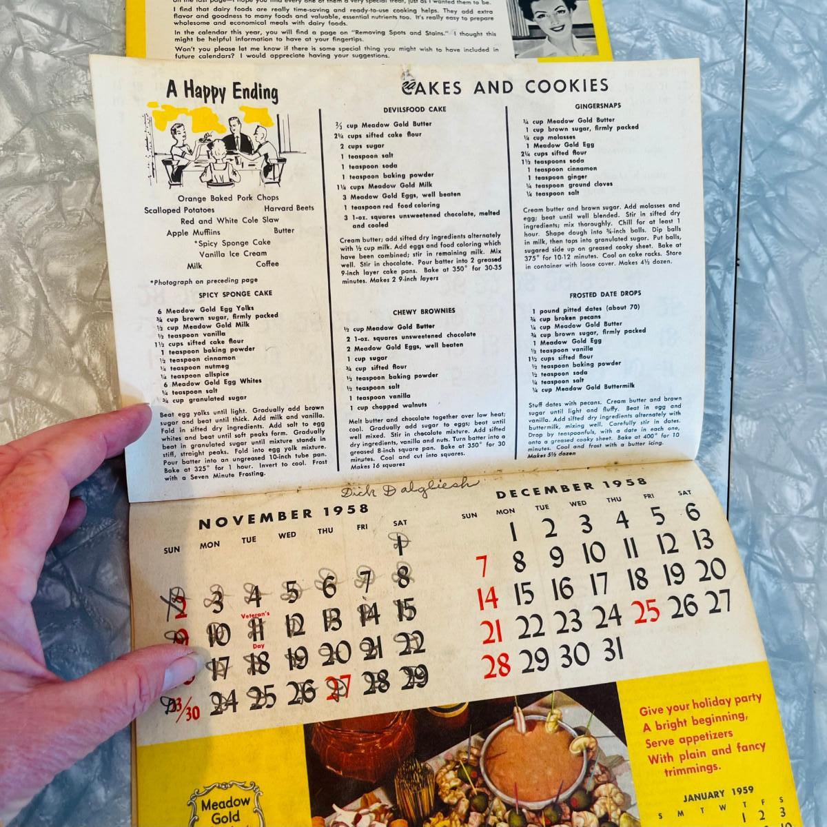 Meadow Gold Calendar 1958