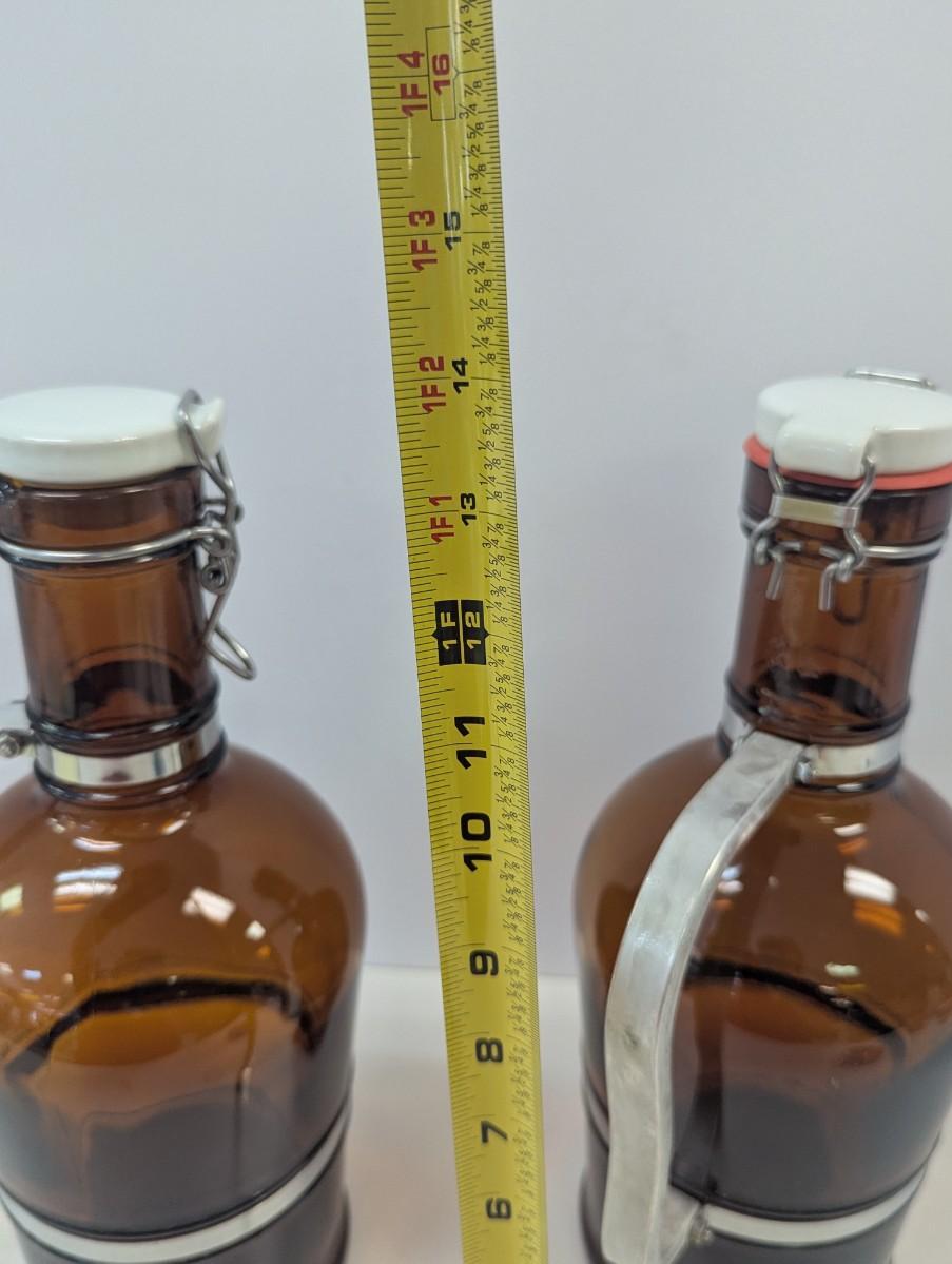 7 - Muster Geschutzt 2 Liter Brown Glass Aluminum Handled Beer Growler Bottles