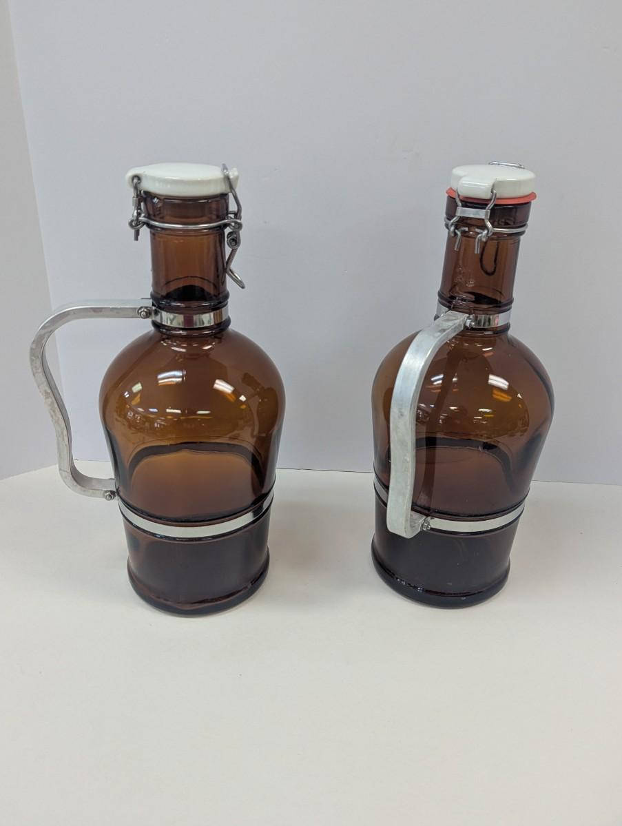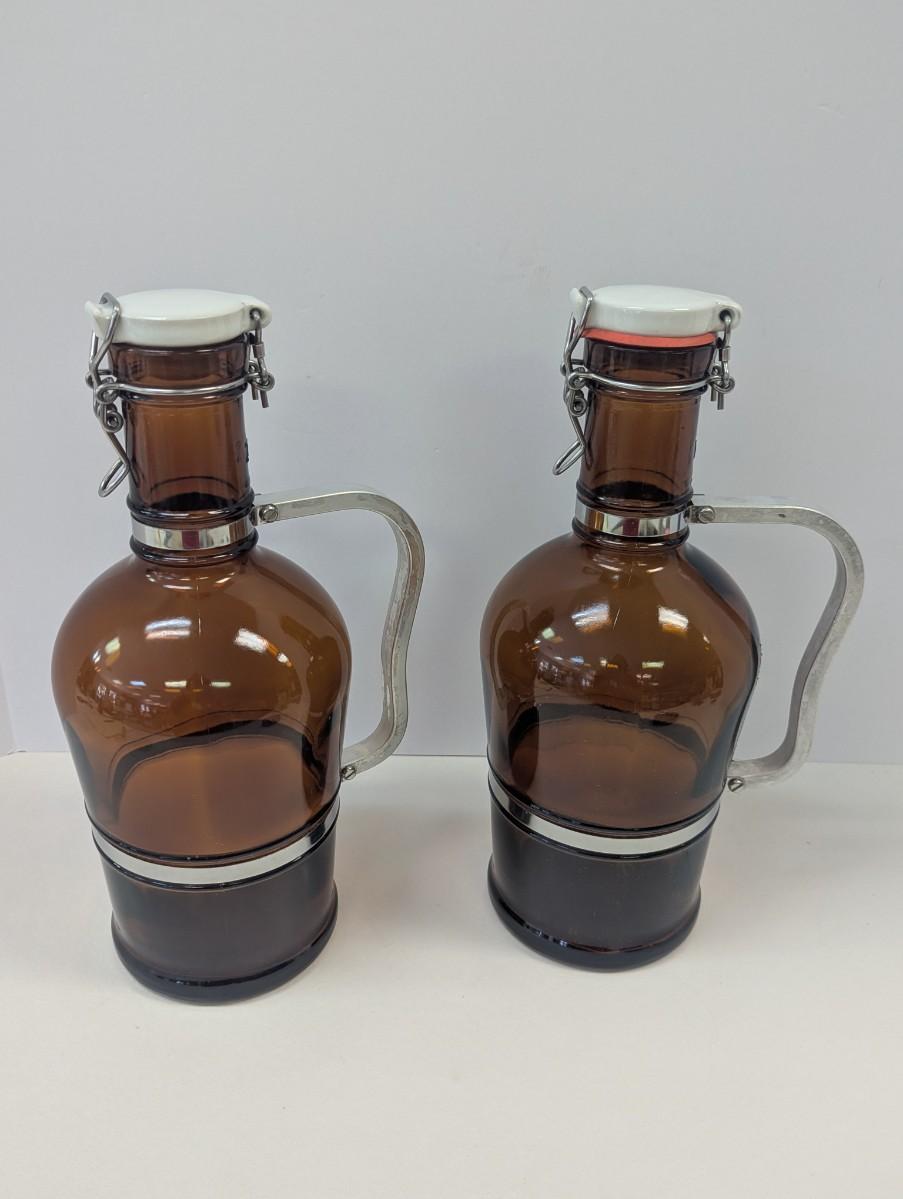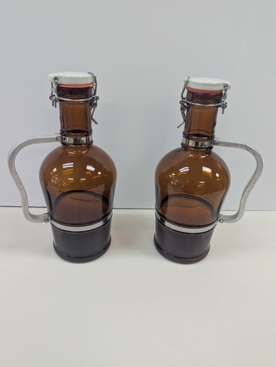 2 - Muster Geschutzt 2 Liter Brown Glass Aluminum Handled Beer Growler Bottles