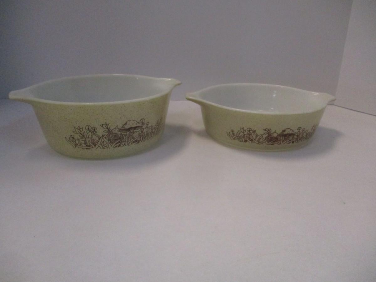 Vintage Pyrex Forest Francies Mushroom Casserole Baking Dishes