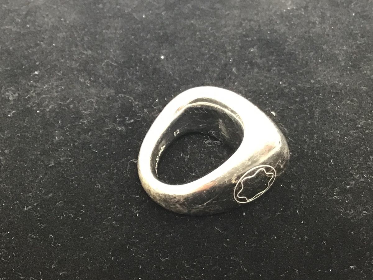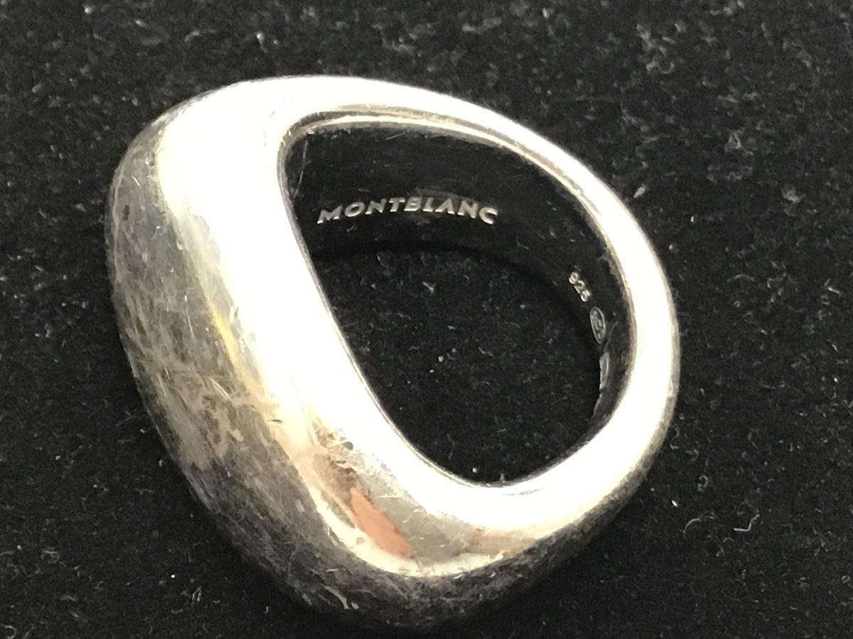 Measuring approx. 17.8mm wide, fashioned in silver. Stamped "MONTBLANC 925" and assorted hallmarks. Size 6.