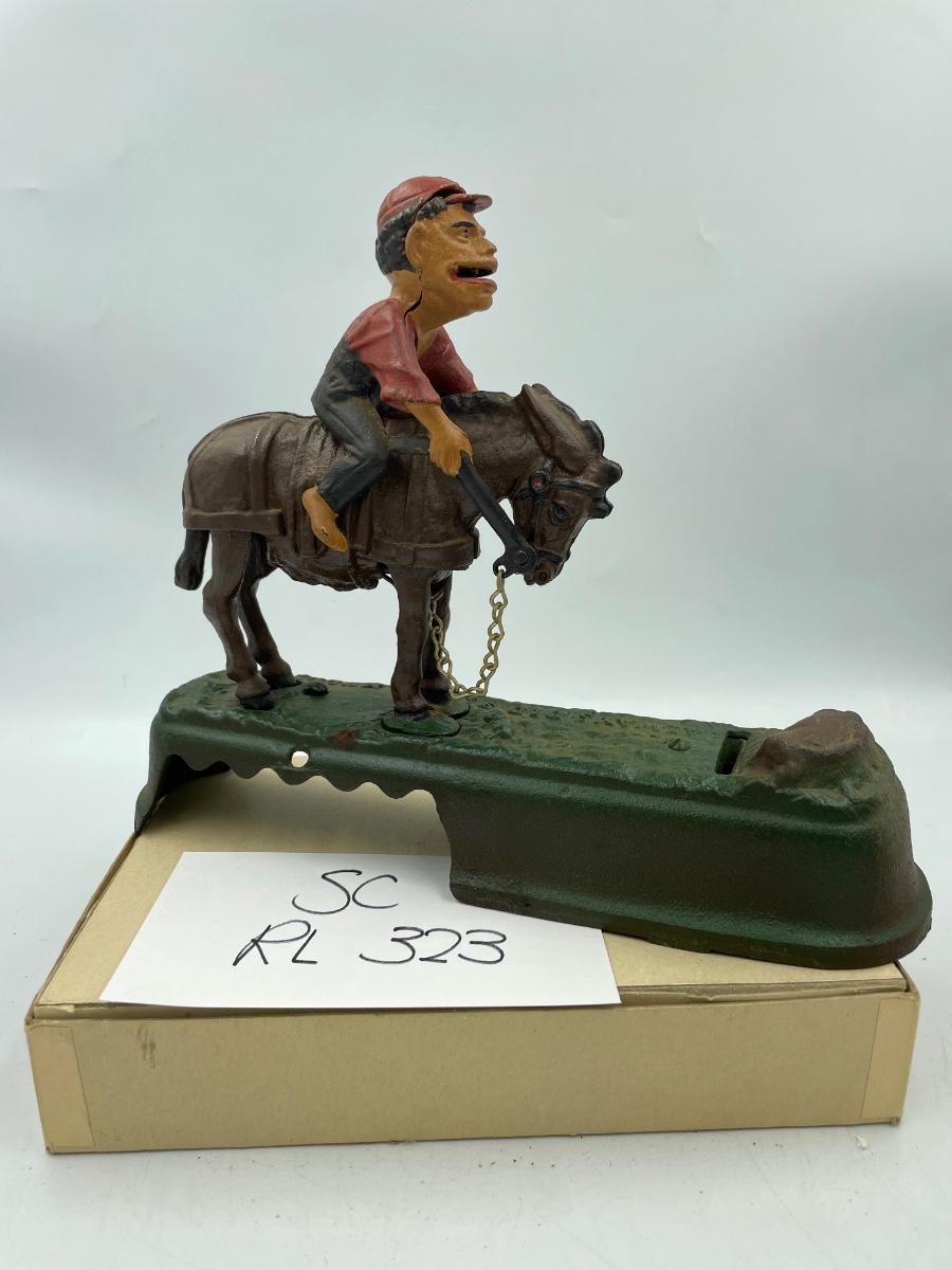 Mechanical bank “I always did spise a mule” book of knowledge bank