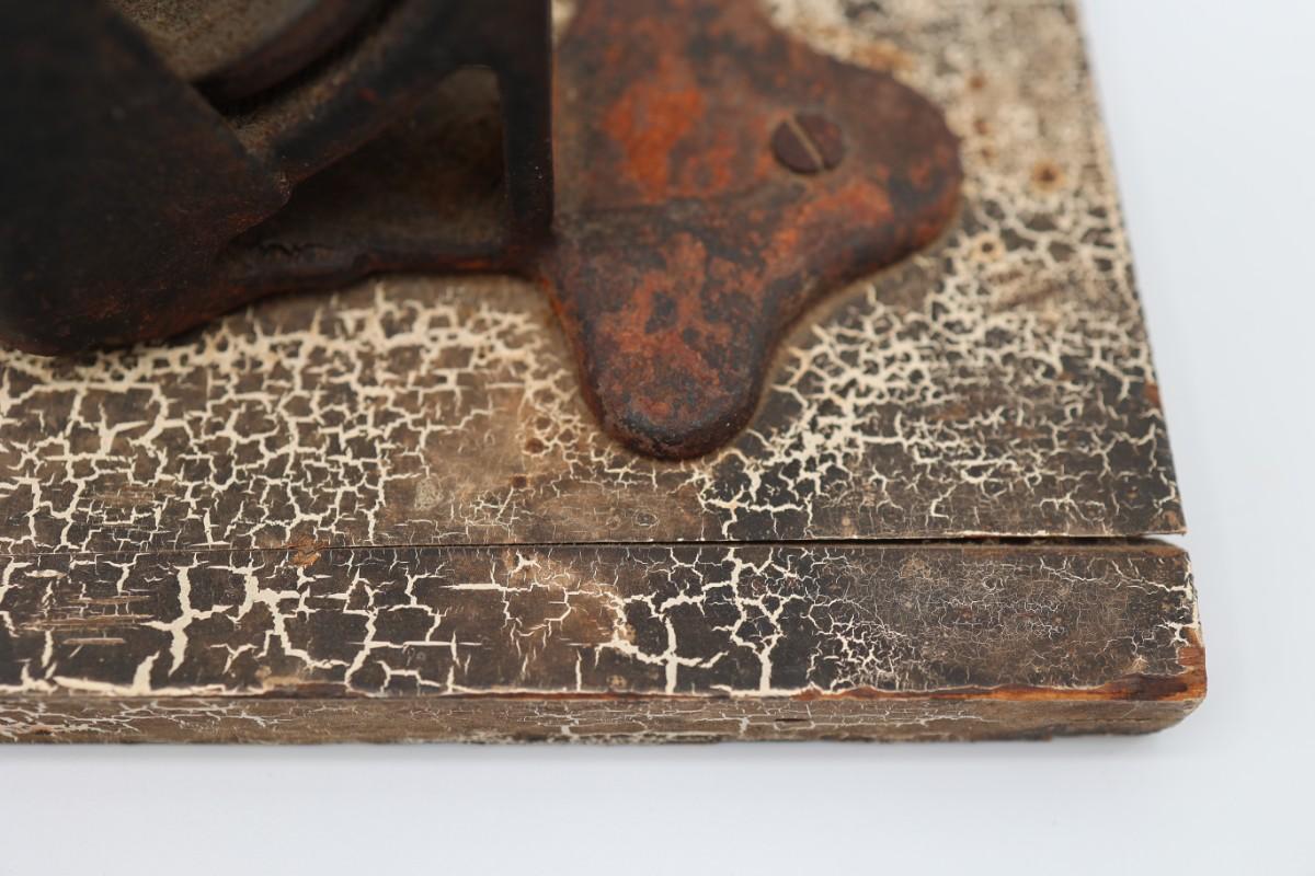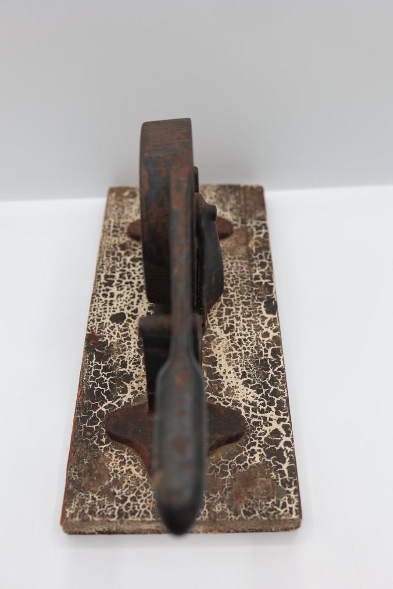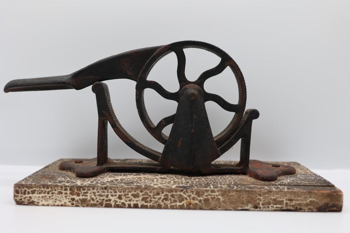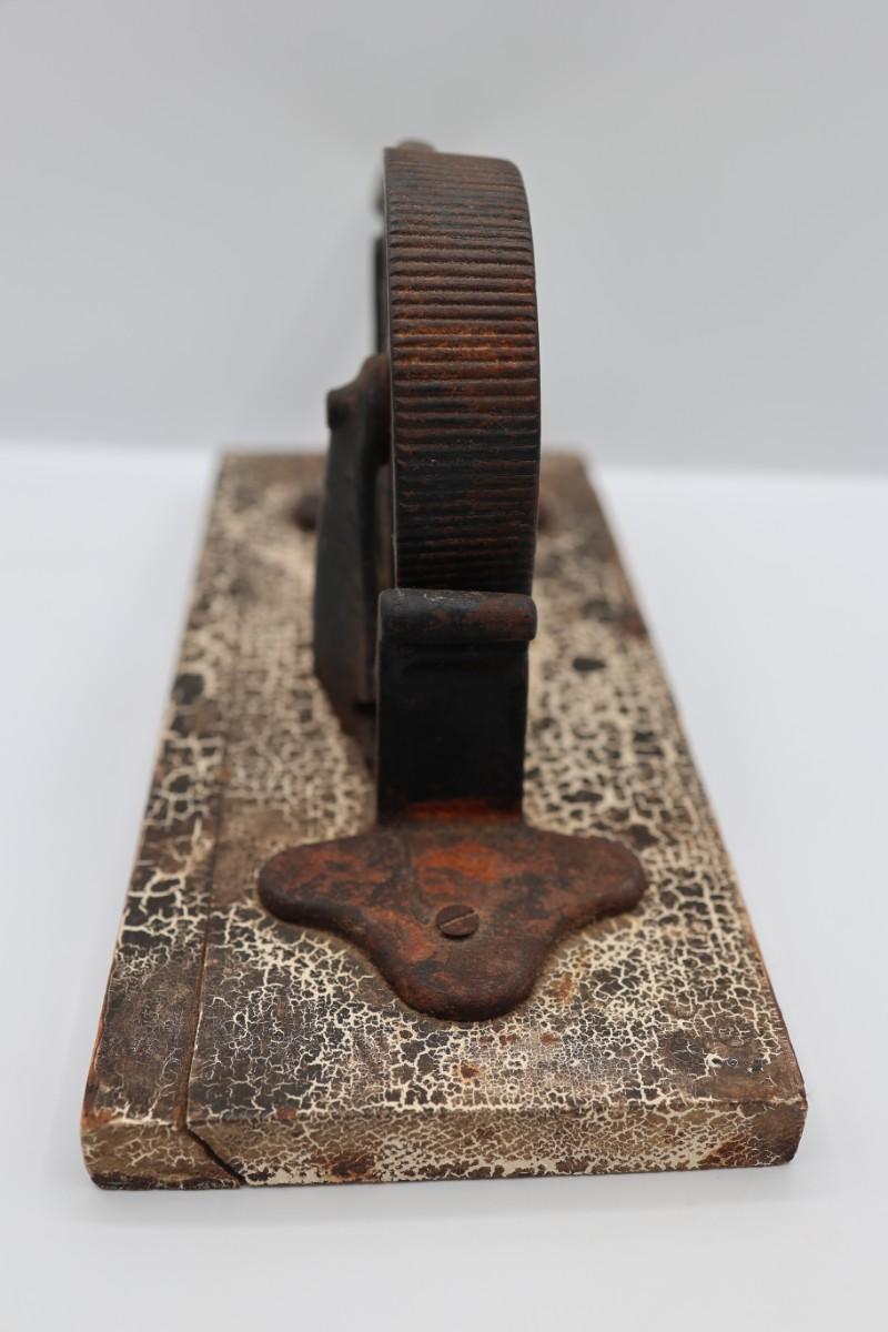 Mechanical Cast Iron Cork Press Tool Mounted on Wooden Plank