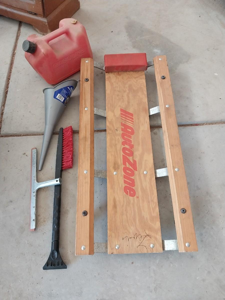 MECHANICS CREEPER-GAS CAN-FUNNEL-SNOW SCRAPER