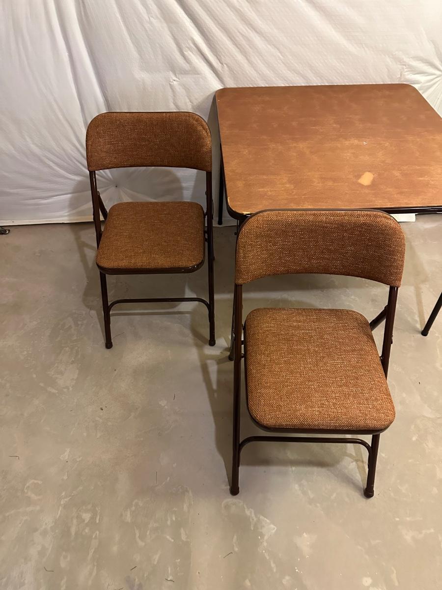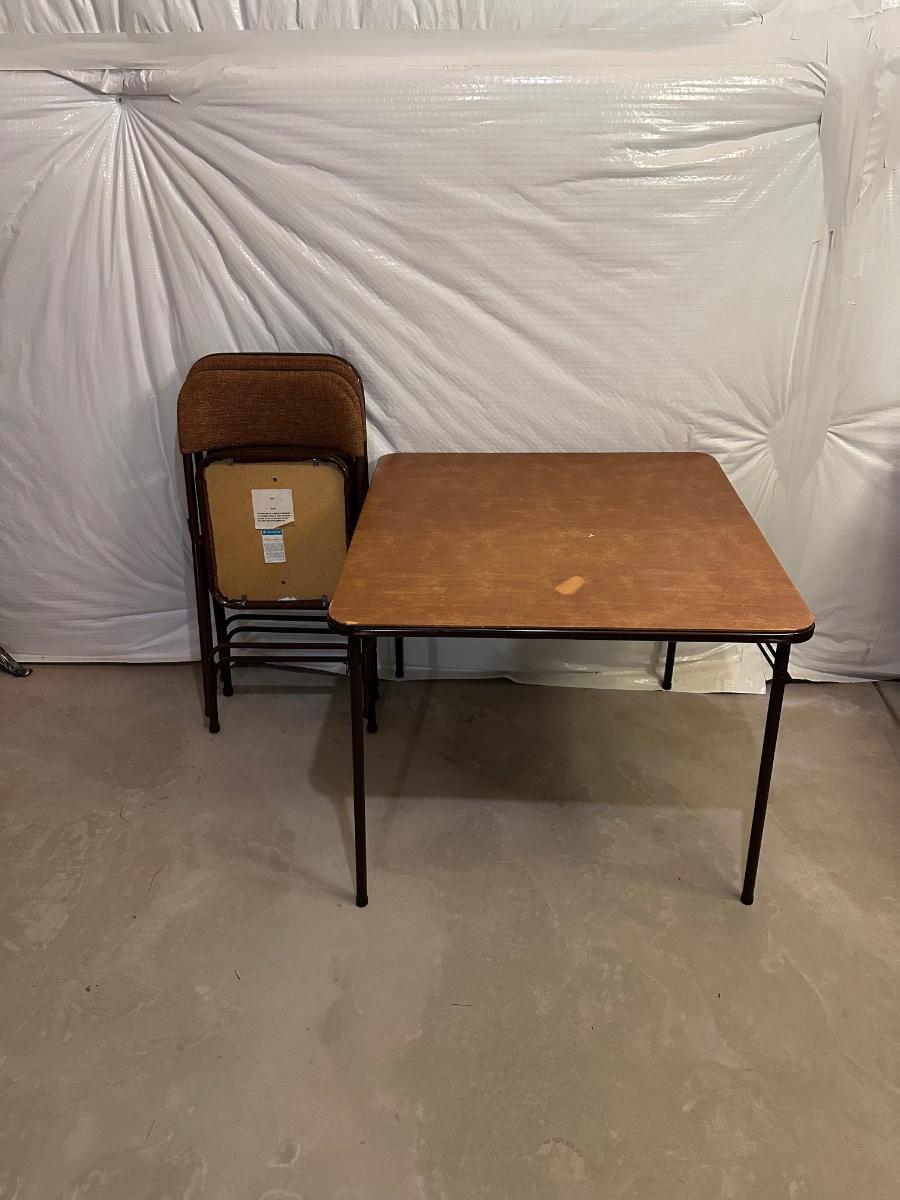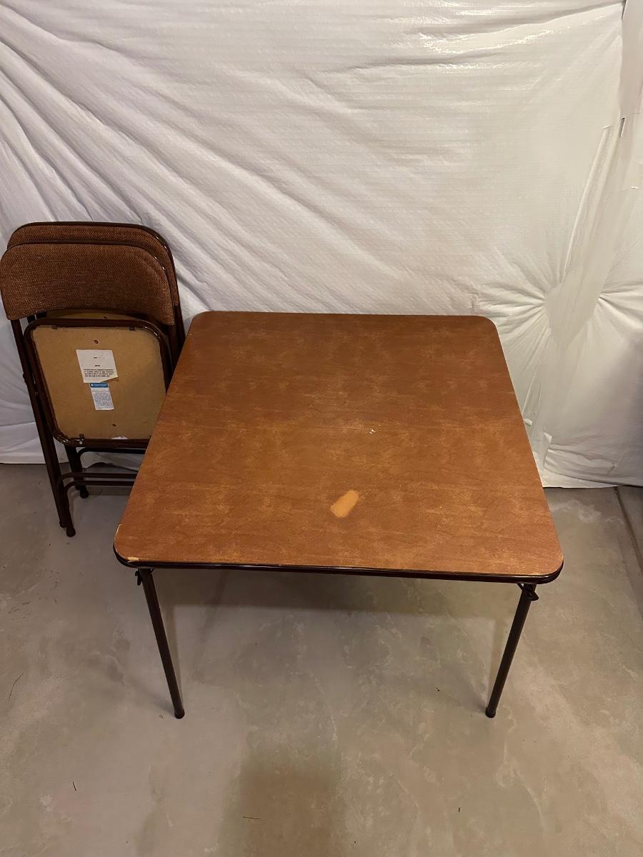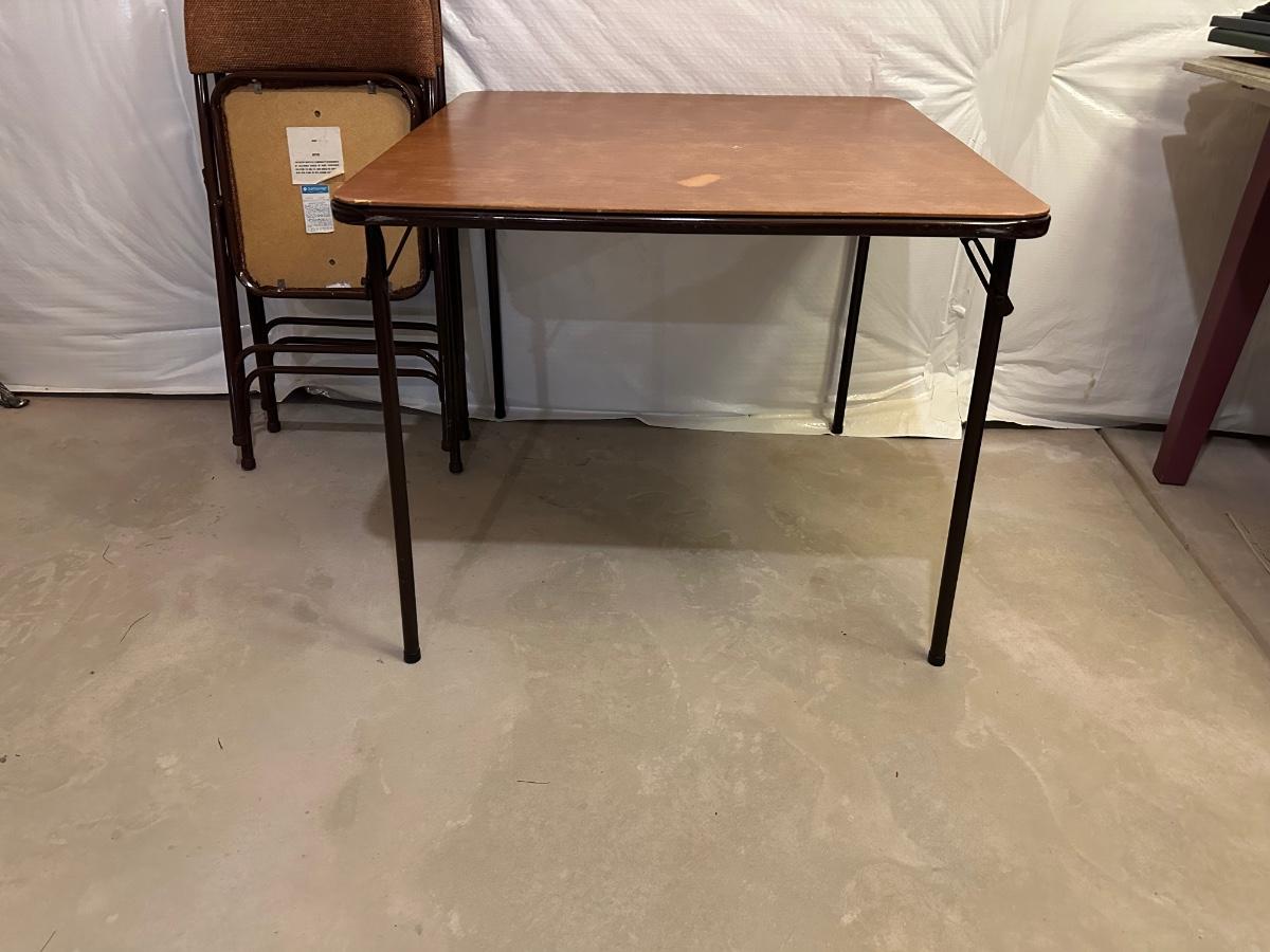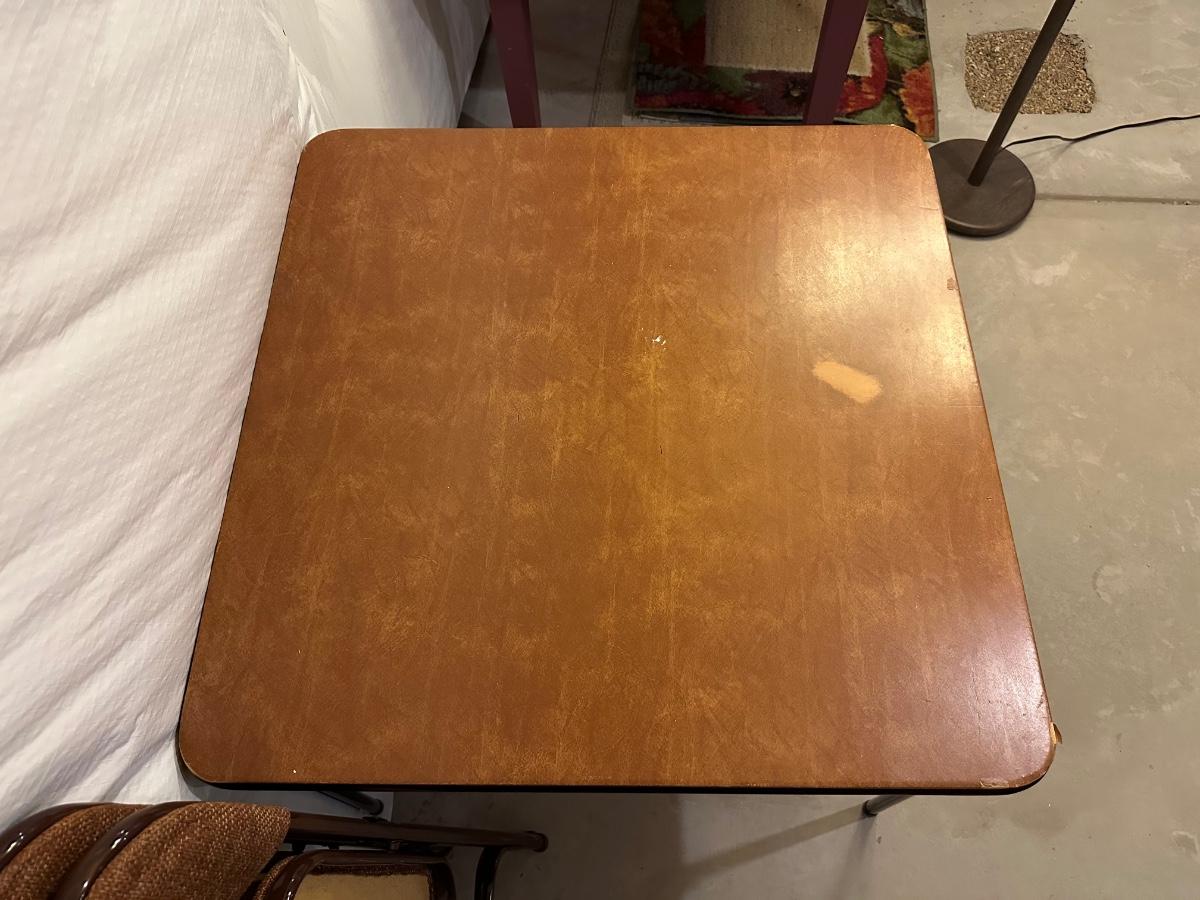 Card table measures 27-3/4”H x 33-5/8” x 33-5/8”