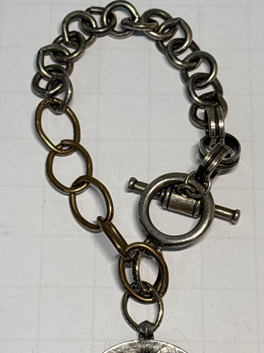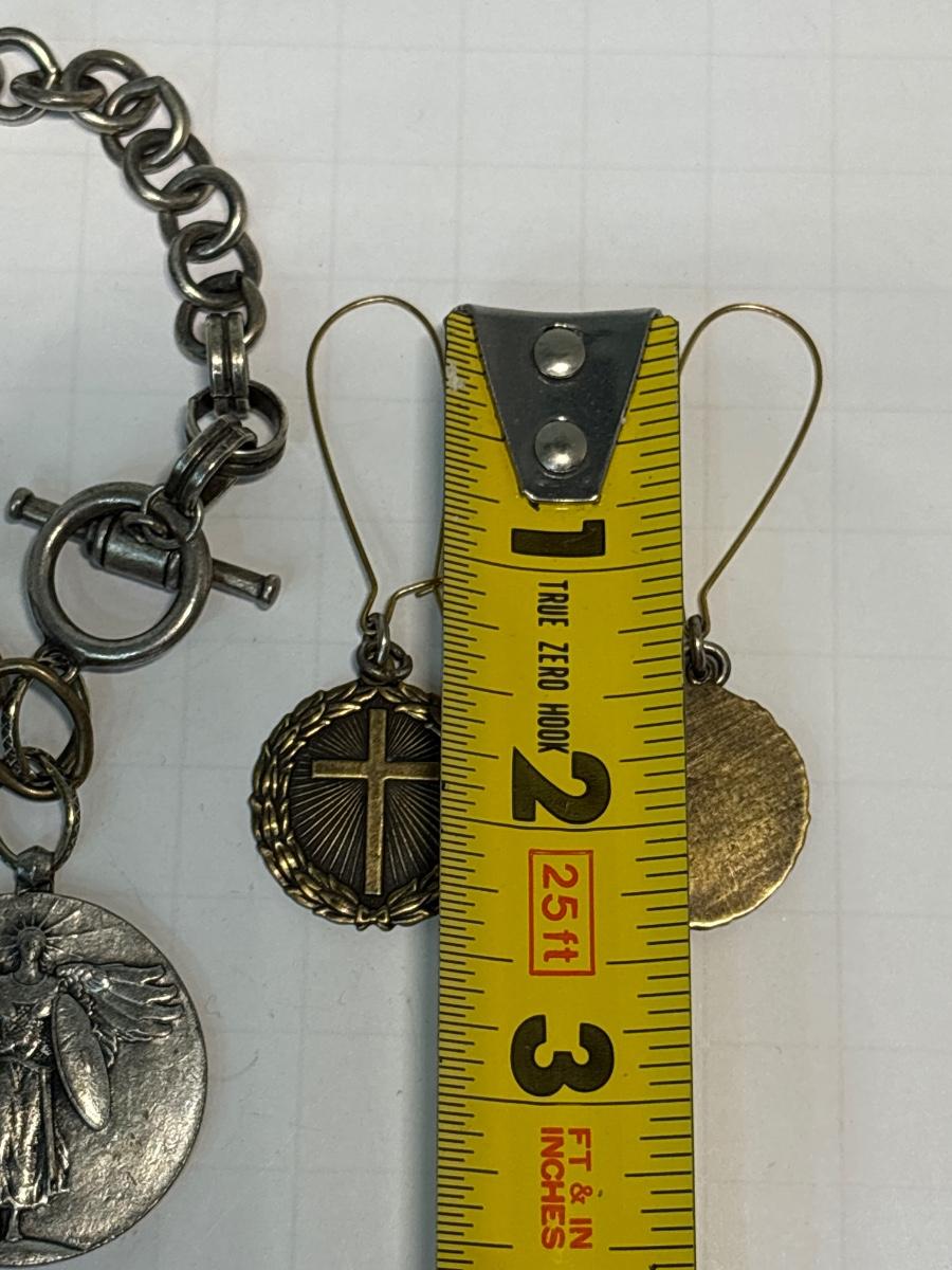 Medallion bracelet & cross earrings