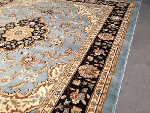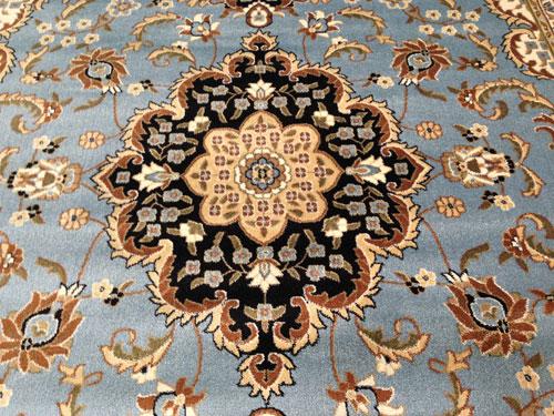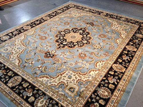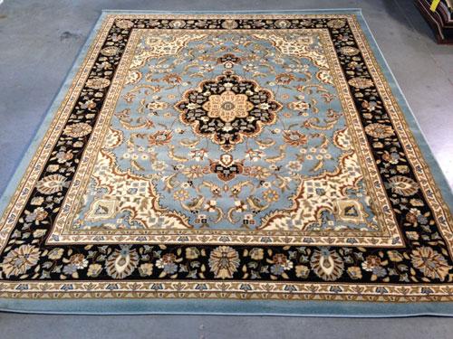 7 Feet 10 Inches X 9 Feet 10 Inches Classic Traditional Persian crown Medallion Kashan Design Brand Name Rug, in Blue, Black and Multi Accent Colors ,made of Durable and easy to care, Polypropylene Pile Power Loomed in Turkey.