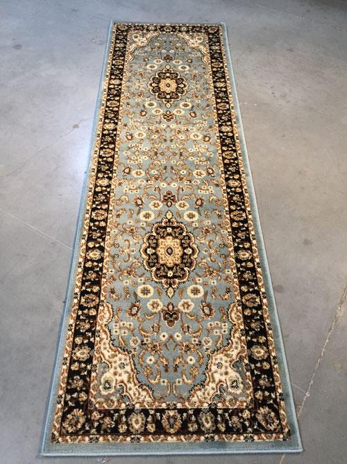 2 Feet 6 Inches X 9 Feet 6 Inches Classic Traditional Persian Crown Medallion Kashan Design. Brand Name Rug, in Blue, Black and Multi Accent Colors. Made of Durable and easy to care. Polypropylene Pile Power Loomed in Turkey.