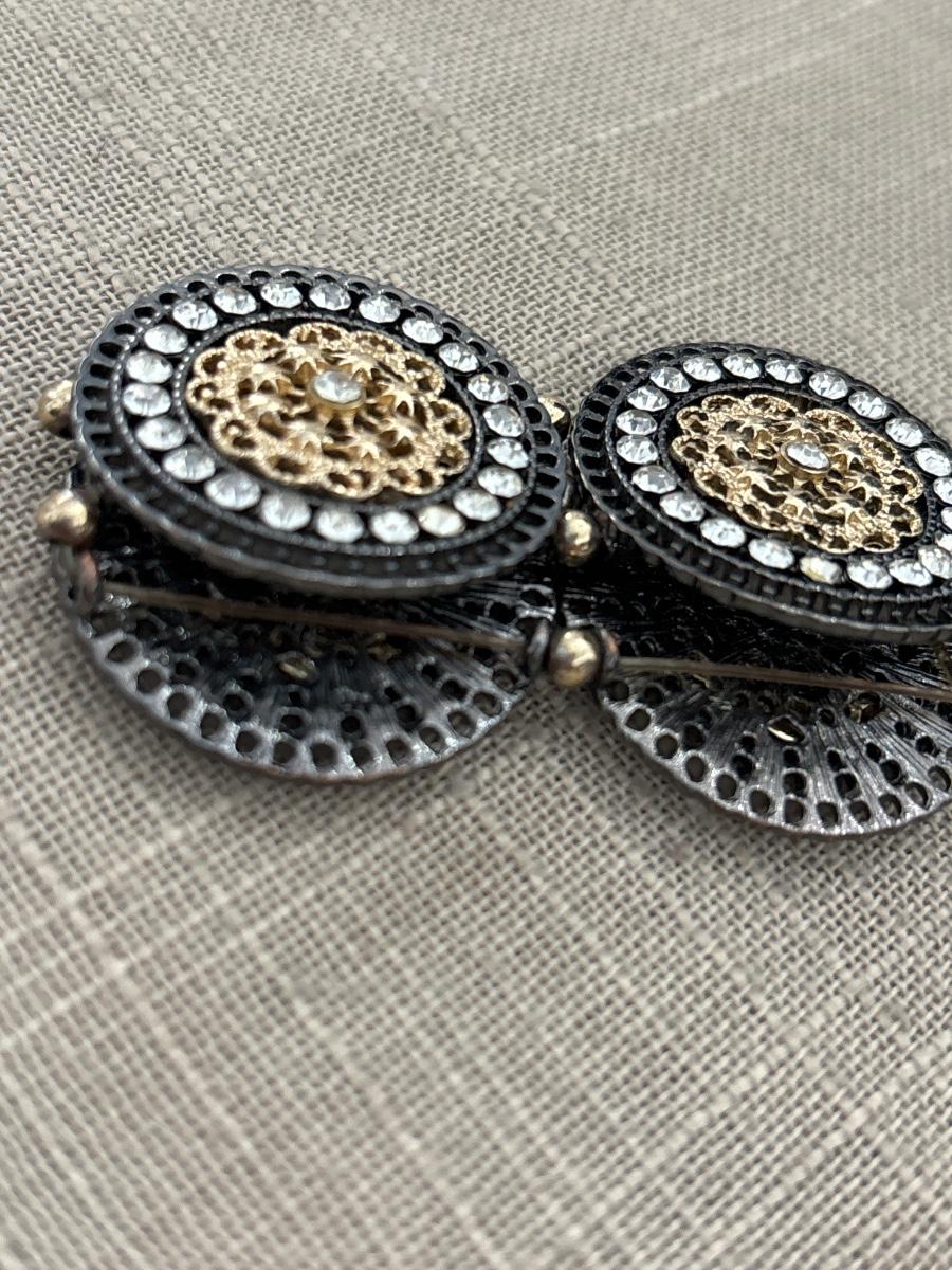 Medallion Expanding Stretch Bracelet Costume Jewelry Bronze Rhinestones