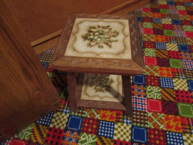 2 DOOR CABINET WITH SHELVES, 2 TIER TILE PLANT STAND
