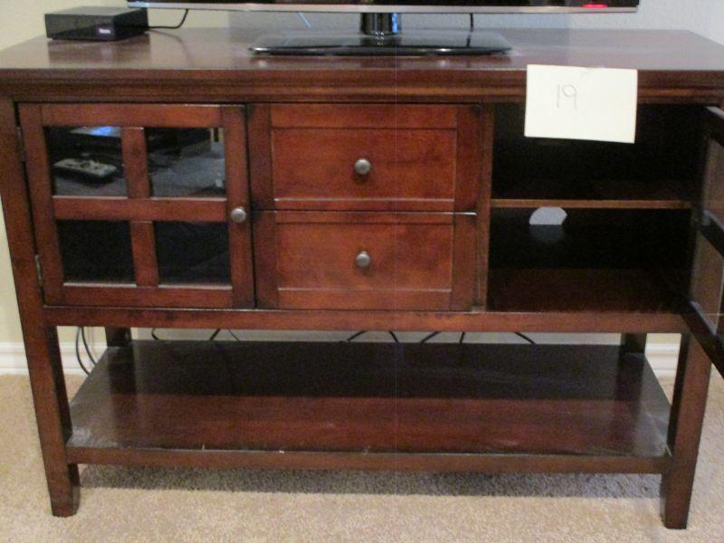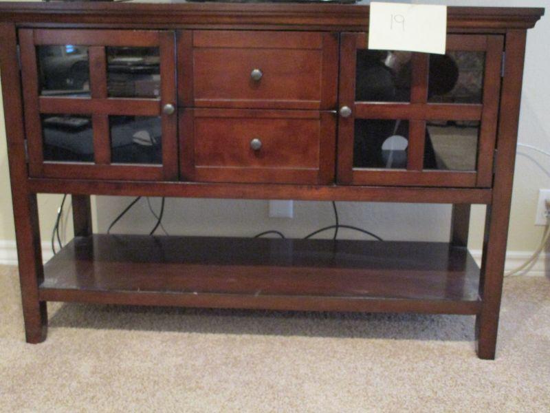 Mahogany entertainment credenza. Measures approx 36in width and 31in height. 19in depth. Very minor scratches. Great condition.