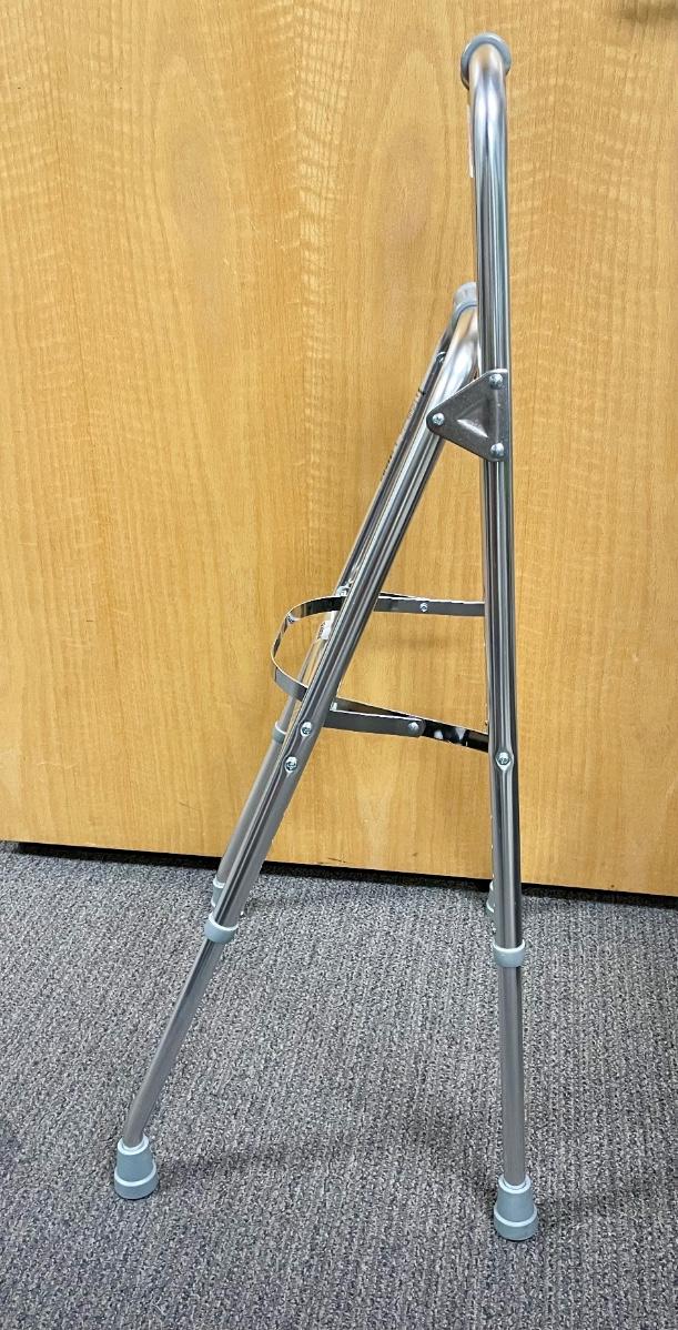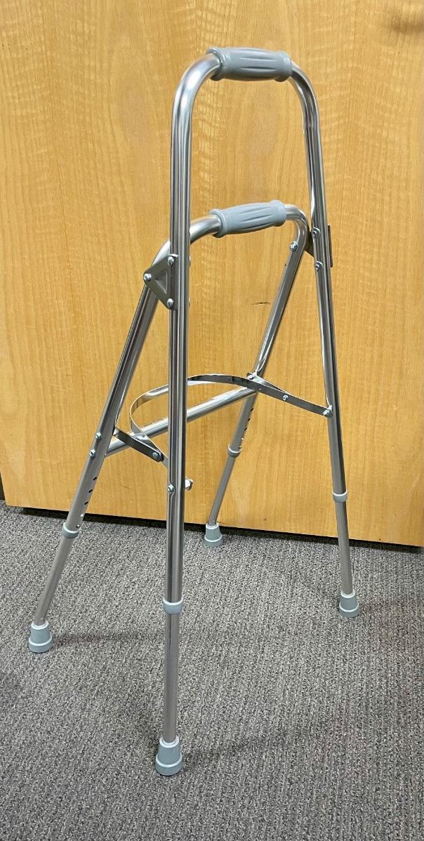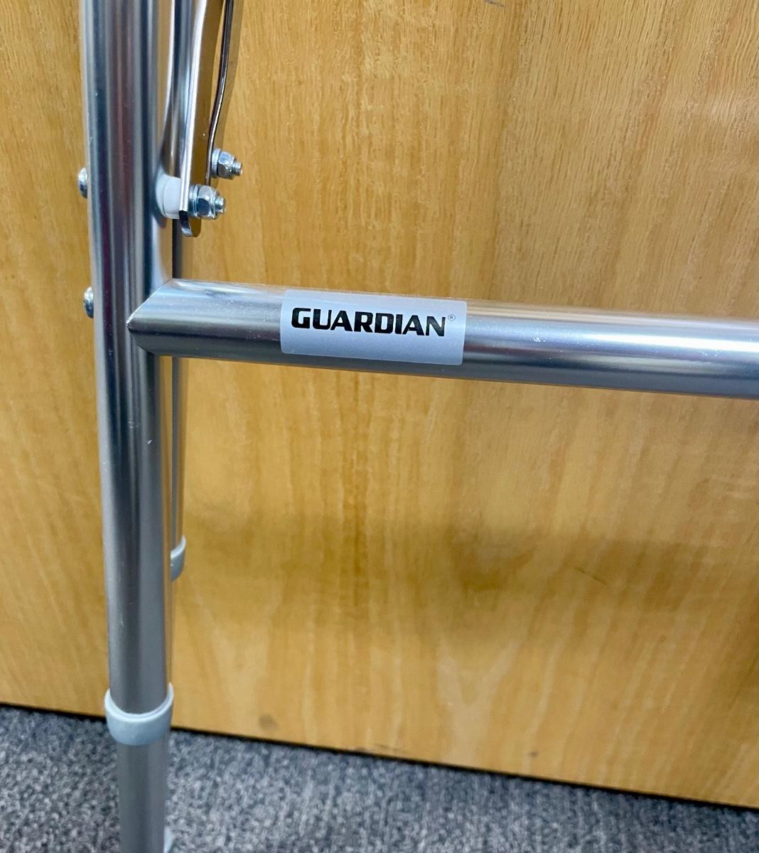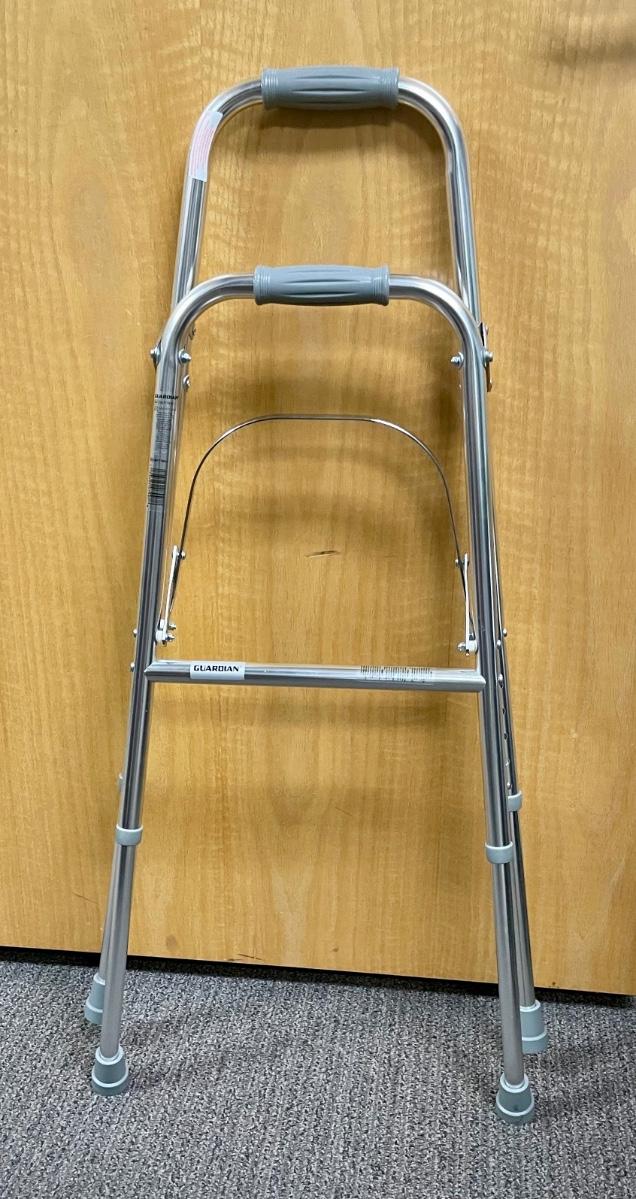 Foldable aluminum specialty walker by Guardian. New. Bilevel hand grip offers extra assistance for users getting in and out of chairs, can be easily maneuvered with one arm due to light weight.