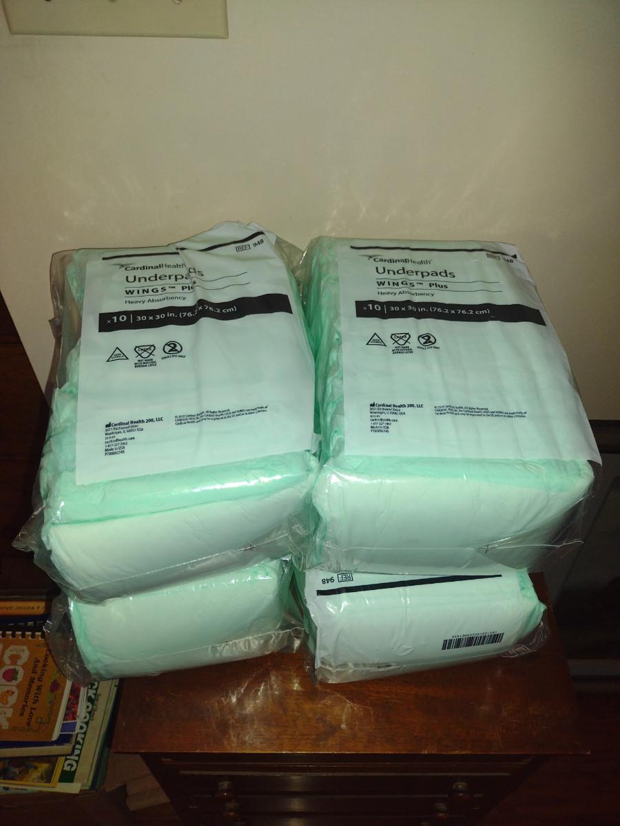Medical Underpads- 30" x 30"- 39 Pieces. Four packs- one pack is missing one pad.