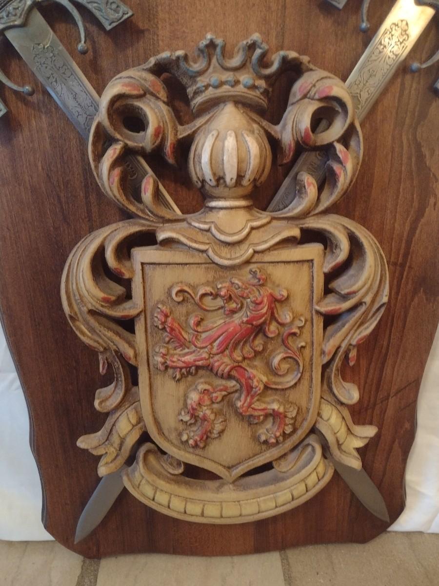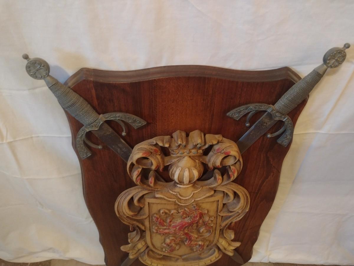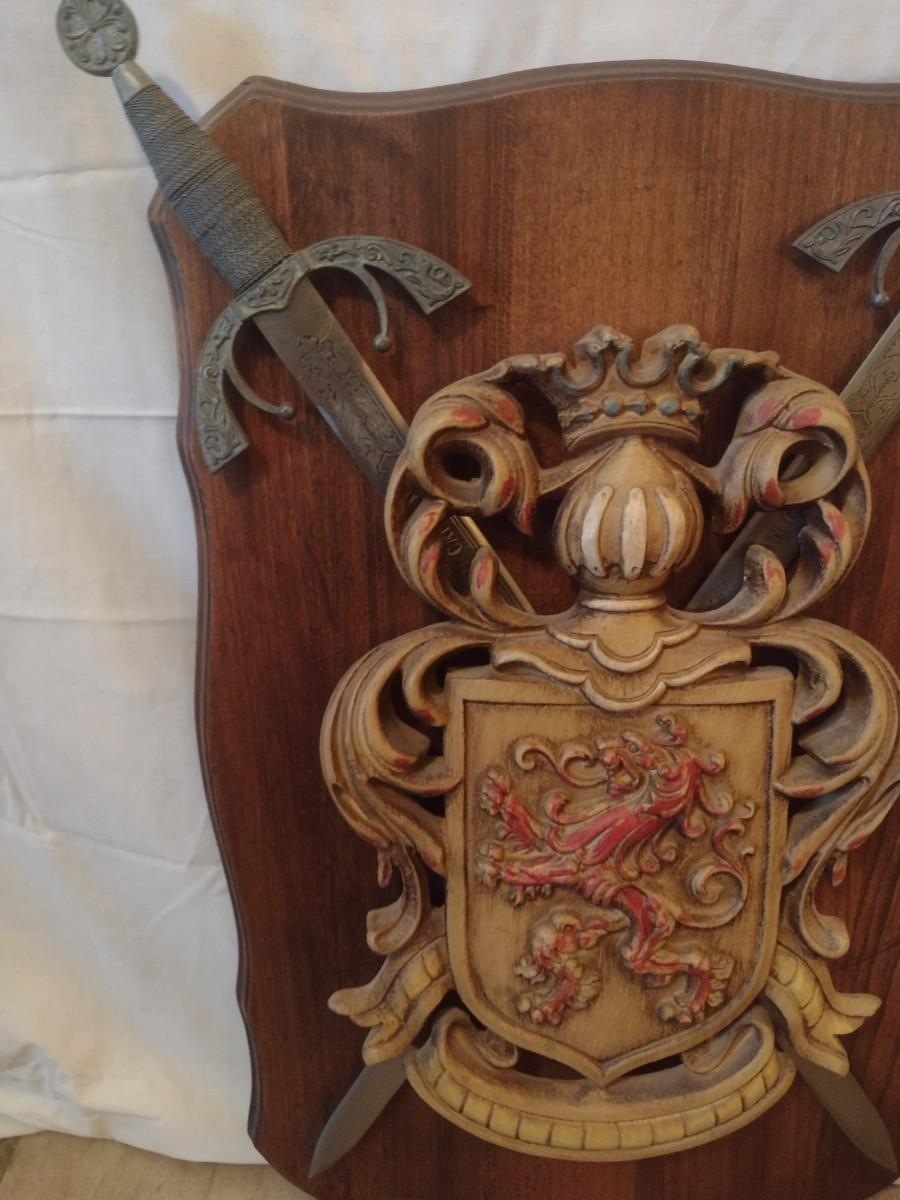 Medieval Crest with Crossing Cutlery on Solid Wood Plaque
