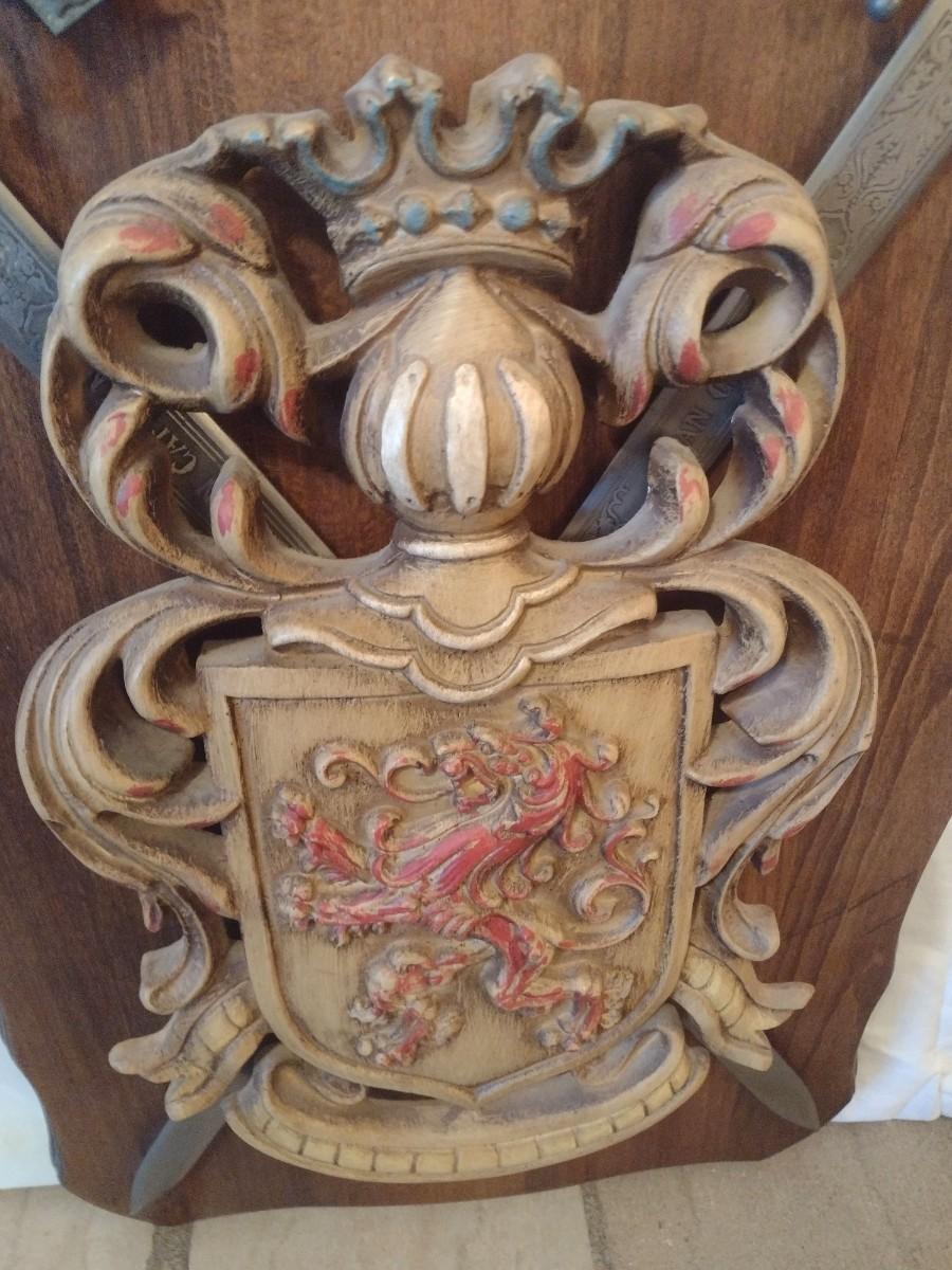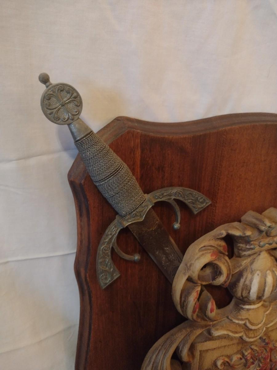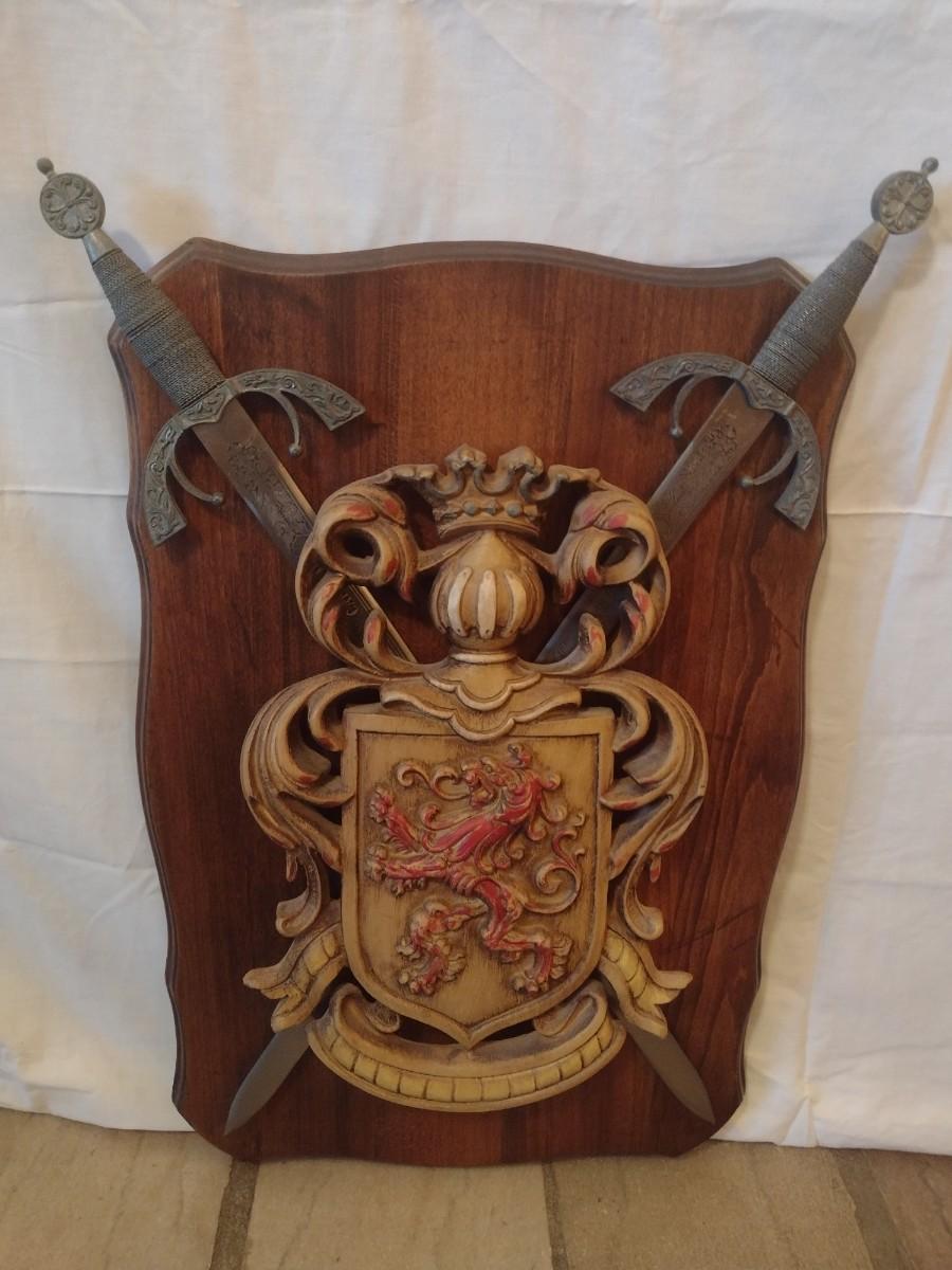 Medieval Crest with Crossing Cutlery on Solid Wood Plaque