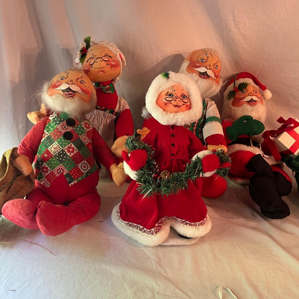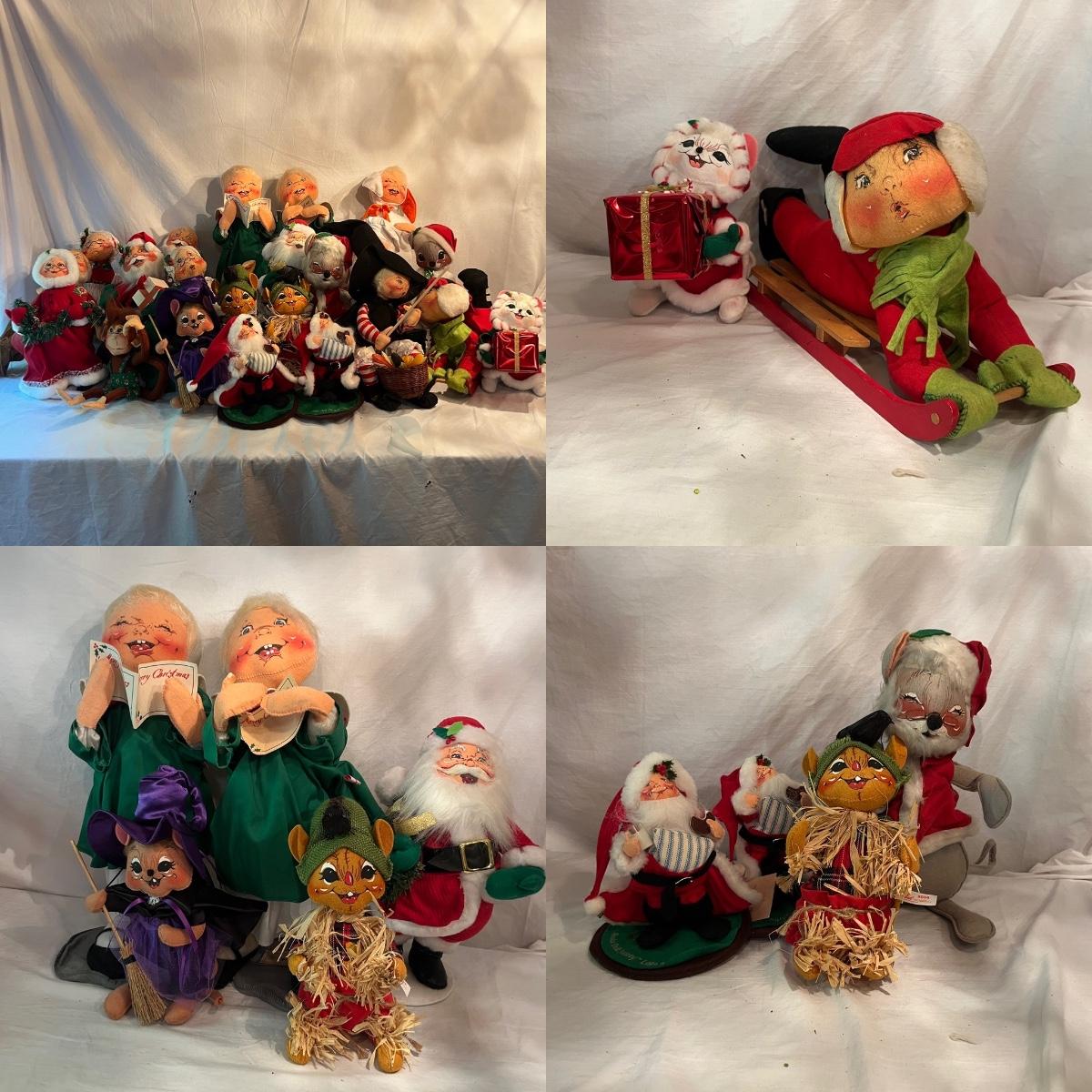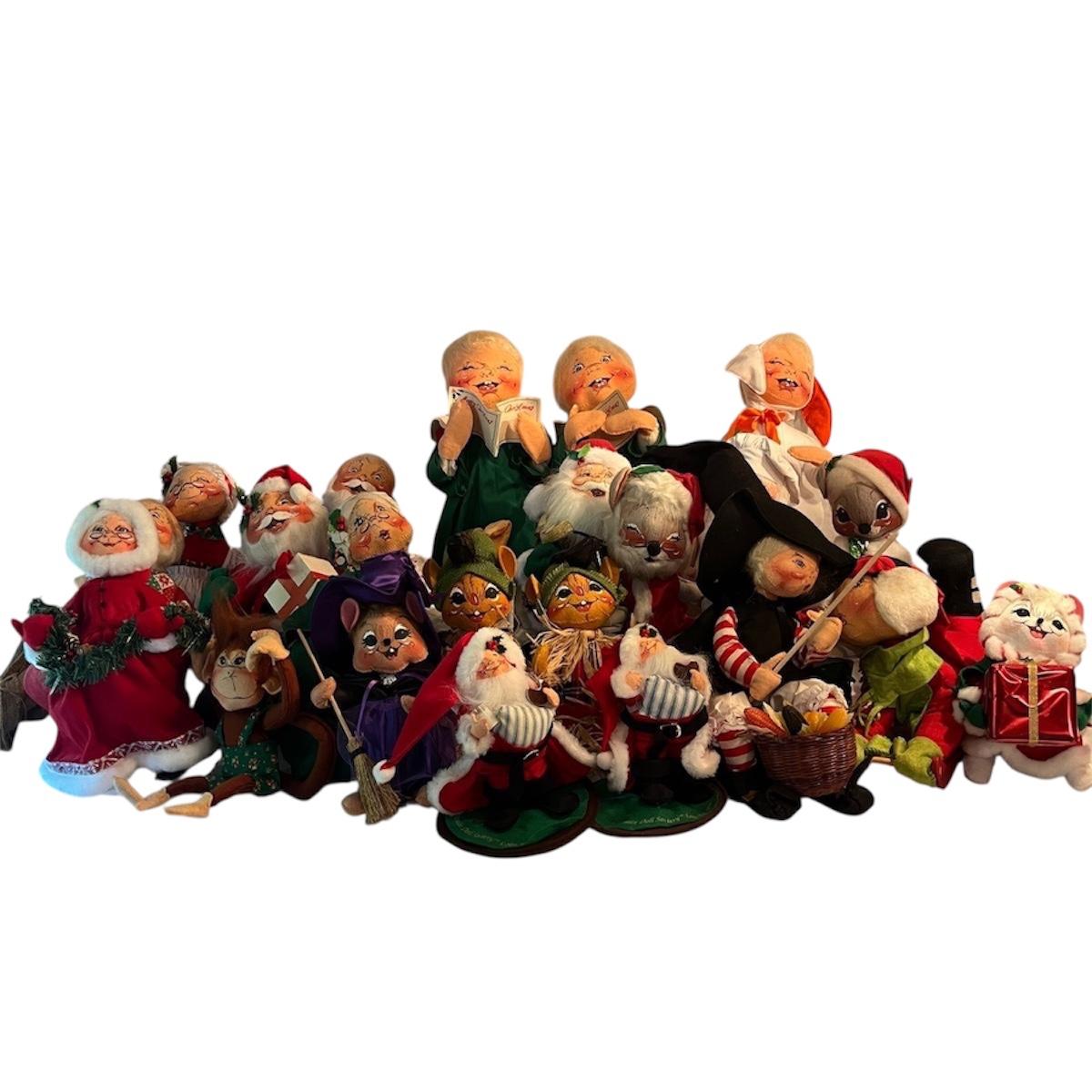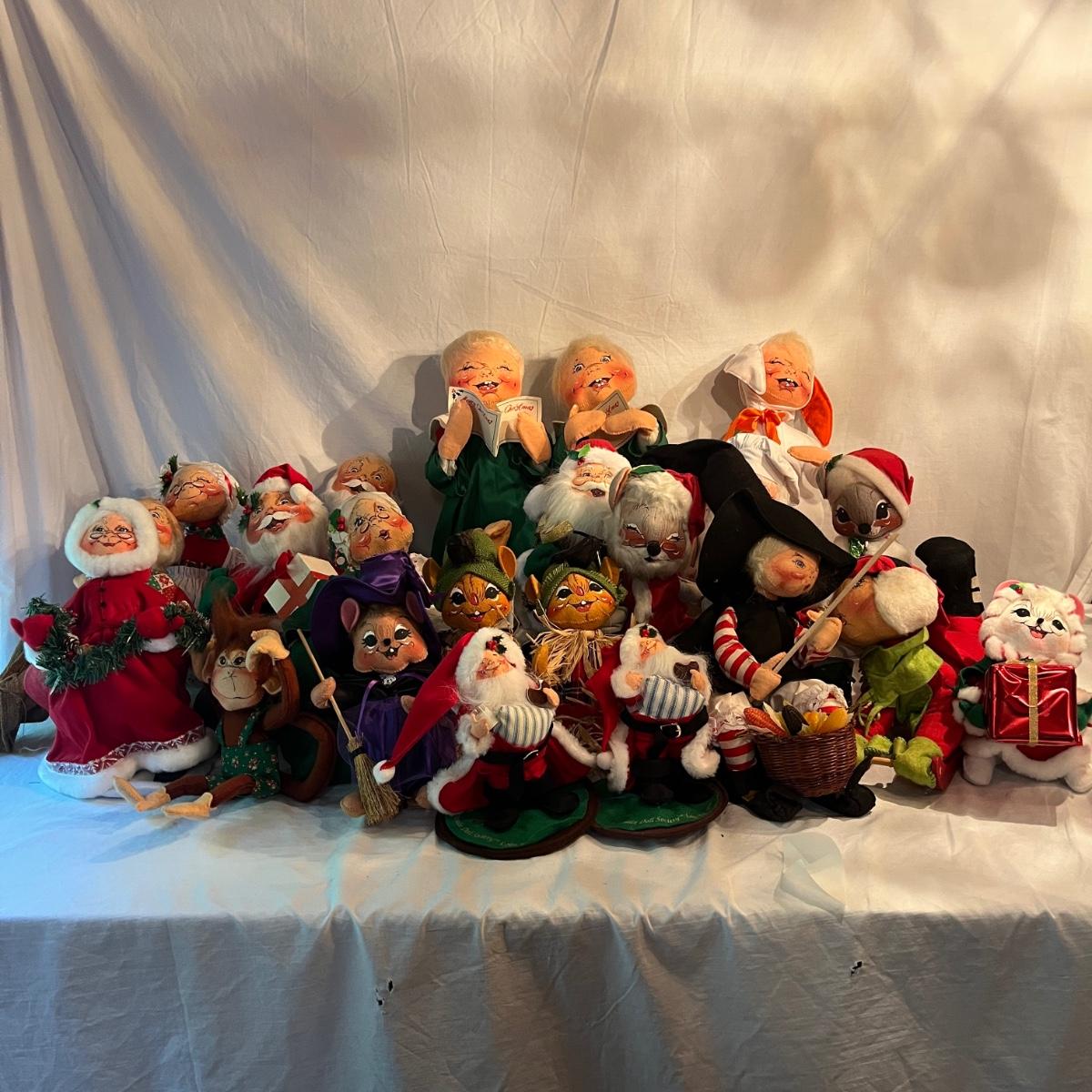 Lot contains a collection of over 20 medium & large Annalee dolls in a variety of sizes and designs. Largest doll measures 7.5”D x 18”H. Not all dolls have labels, but they appear to be Annalee dolls.