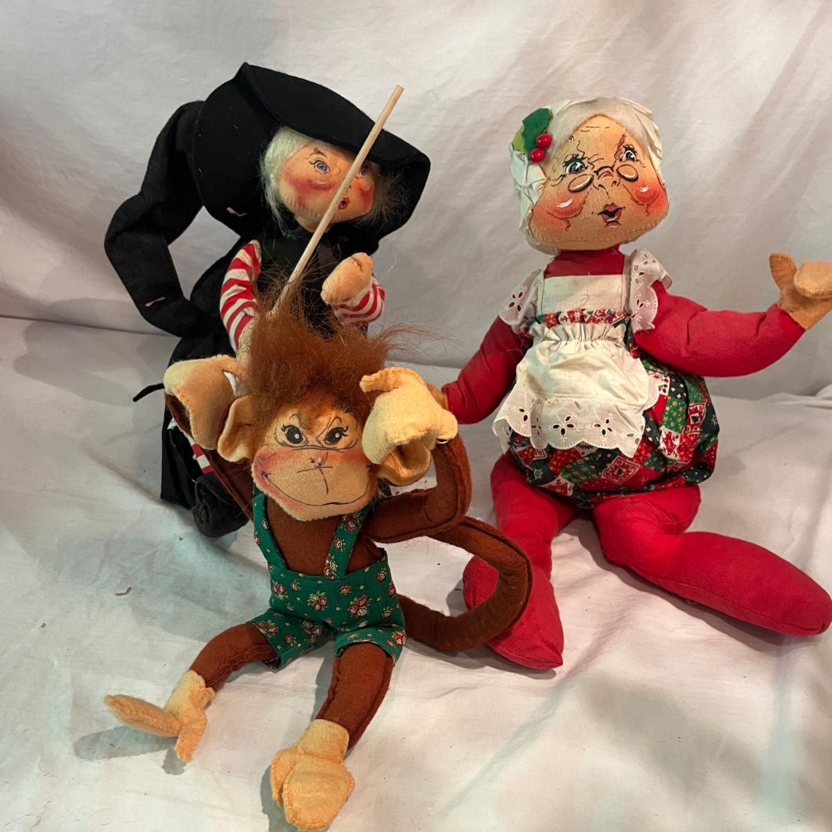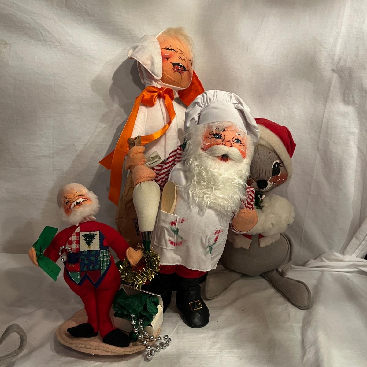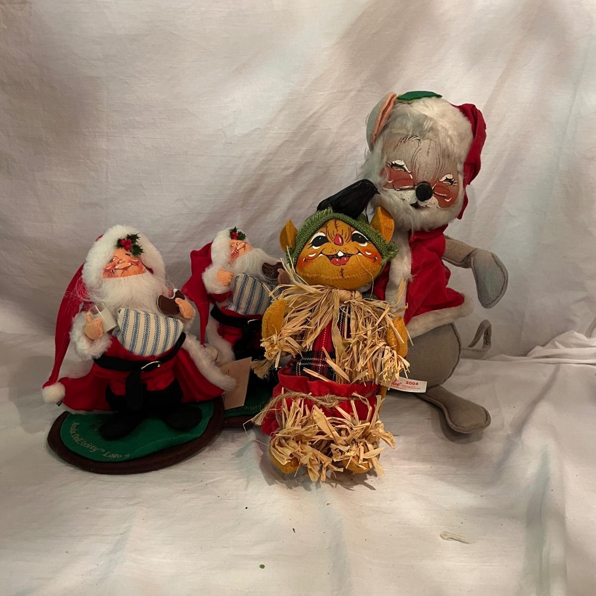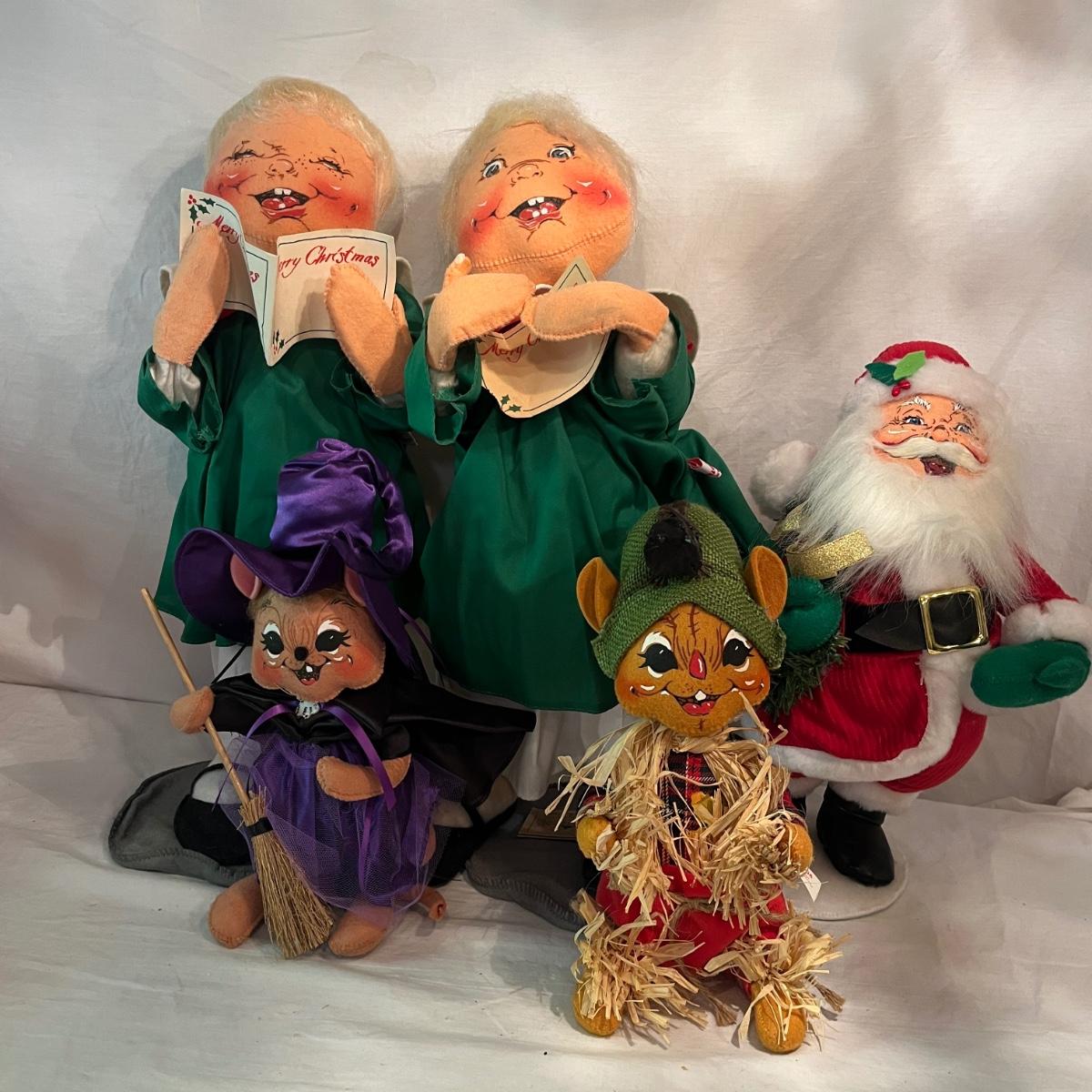Lot contains a collection of over 20 medium & large Annalee dolls in a variety of sizes and designs. Largest doll measures 7.5”D x 18”H. Not all dolls have labels, but they appear to be Annalee dolls.