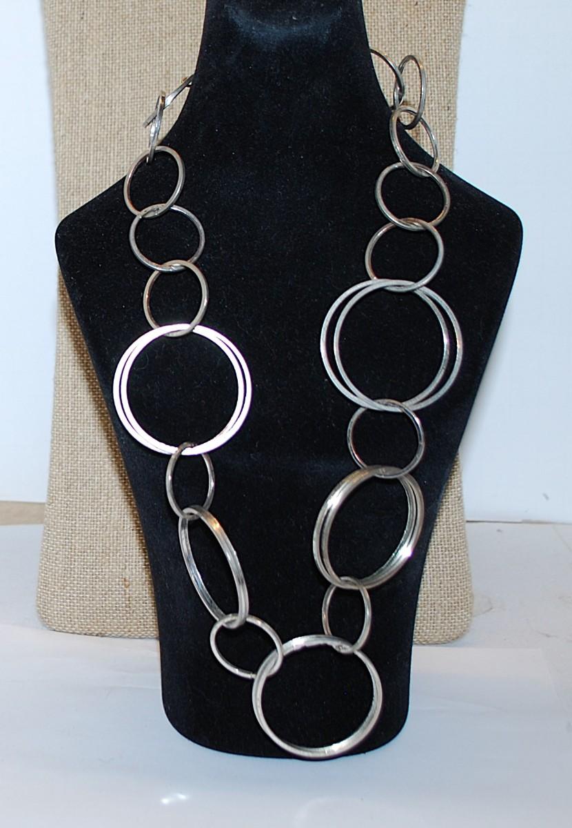 Medium & Large Silver Colored Circles NECKLACE with a Lobster Clasp 18" L