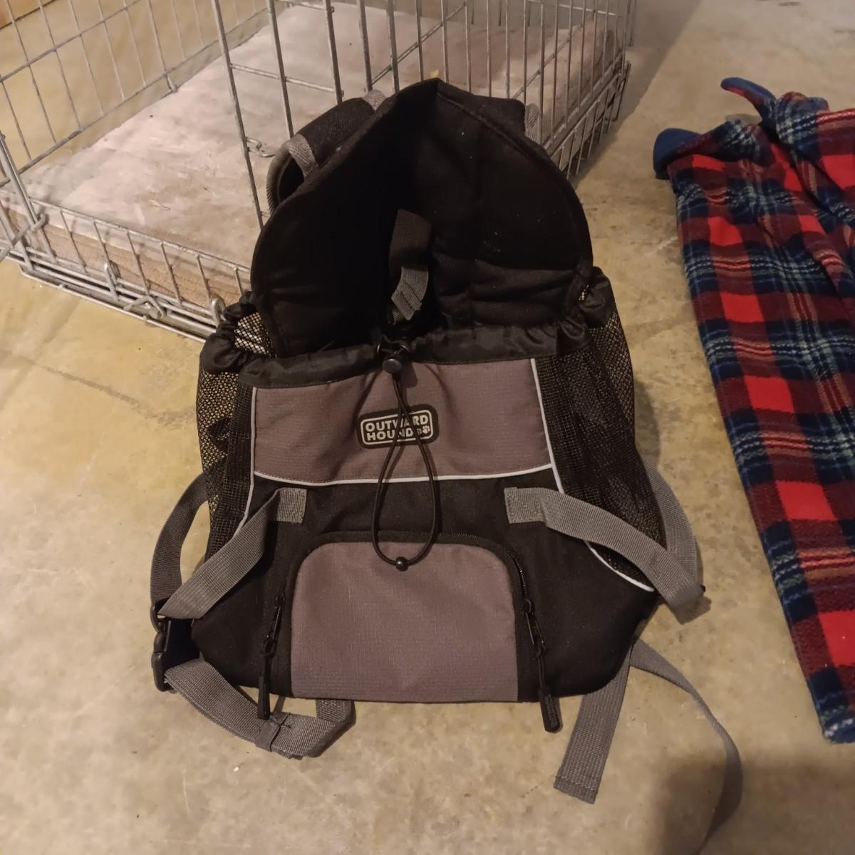 MEDIUM SIZE KENNEL, SW AIRLINE SOFT SIDED KENNEL, OUTWARD HOUND SMALL ANIMAL BACKPACK AND XL DOG COAT
