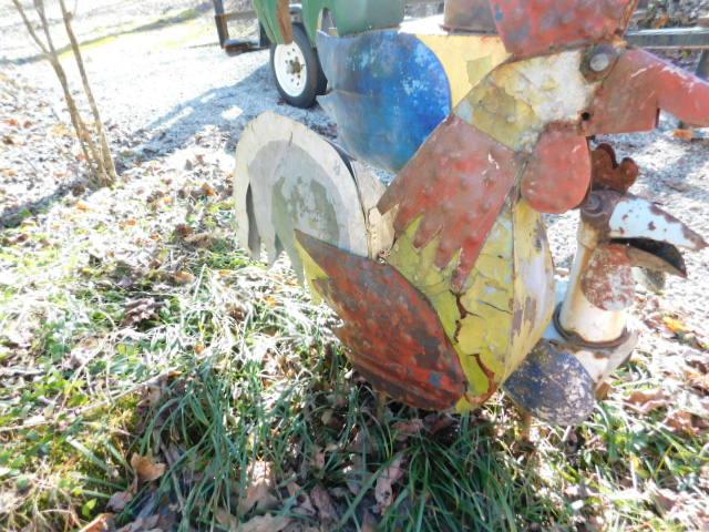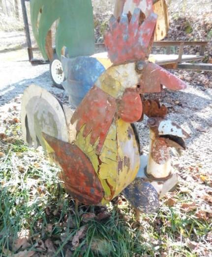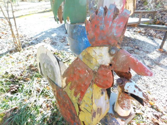 Medium Size Metal Art Chicken 36" item is weathered and a little rusty