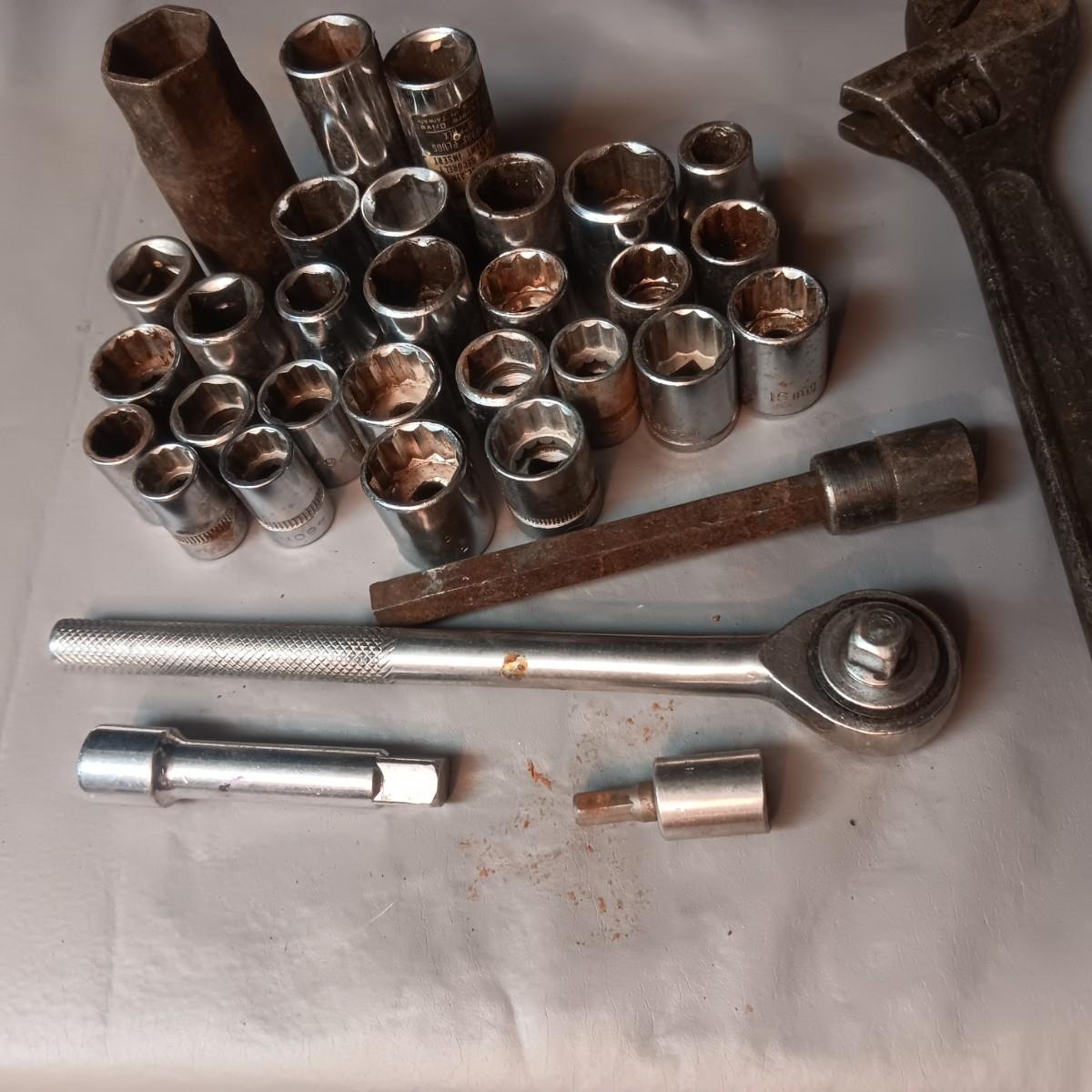 MEDIUM SIZE SOCKETS RATCHET & CRESCENT WRENCH