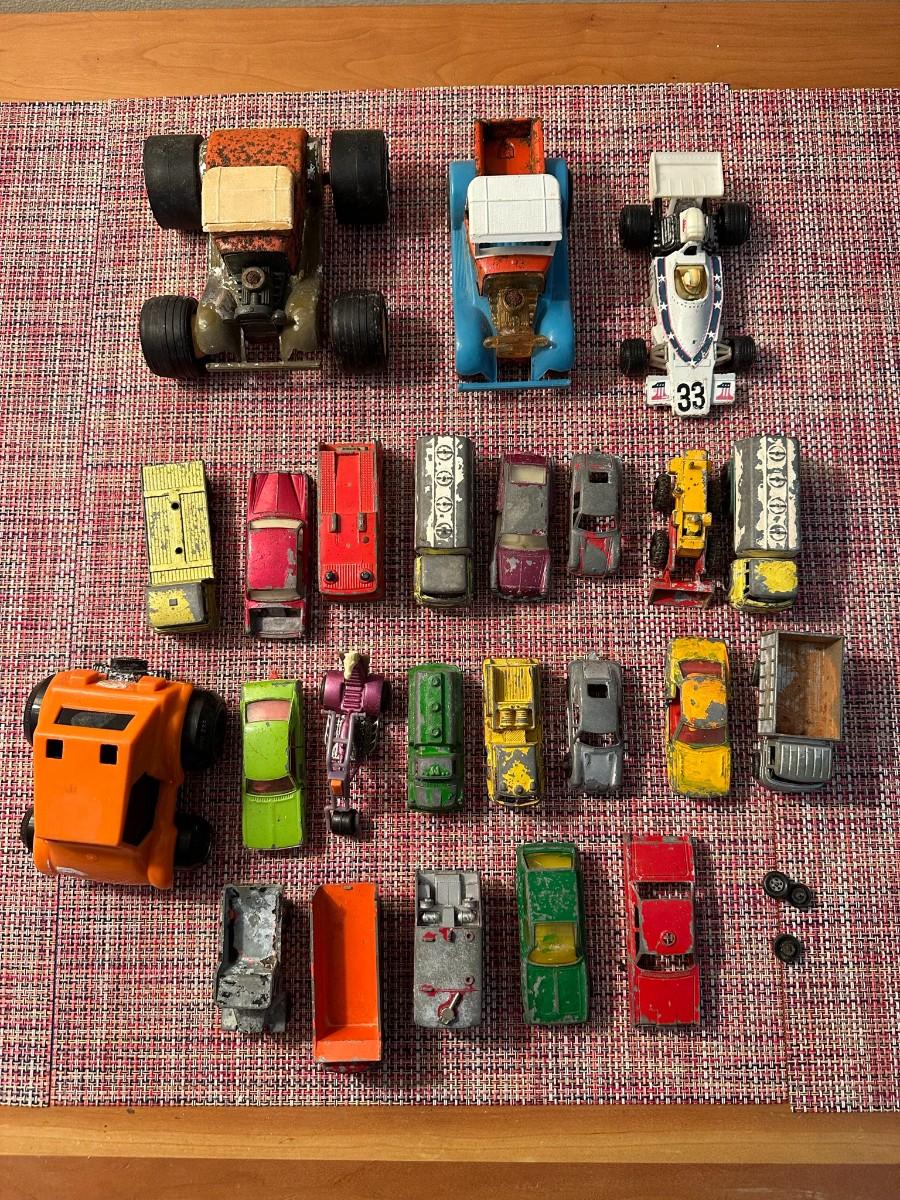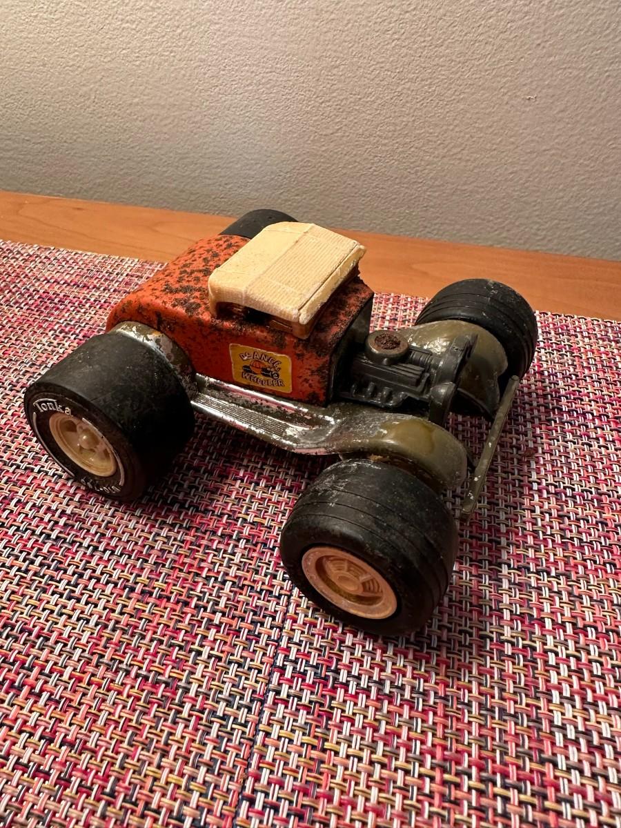 Tonka Orange Wheeler, Tonka Scortcher Truck, Orange Plastic JSS, 27 Metal vehicles (some missing wheels or parts)