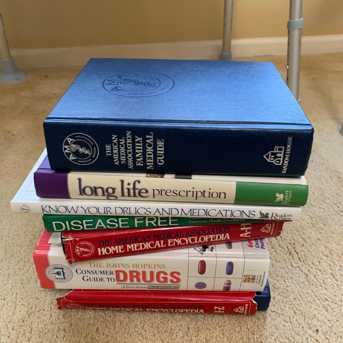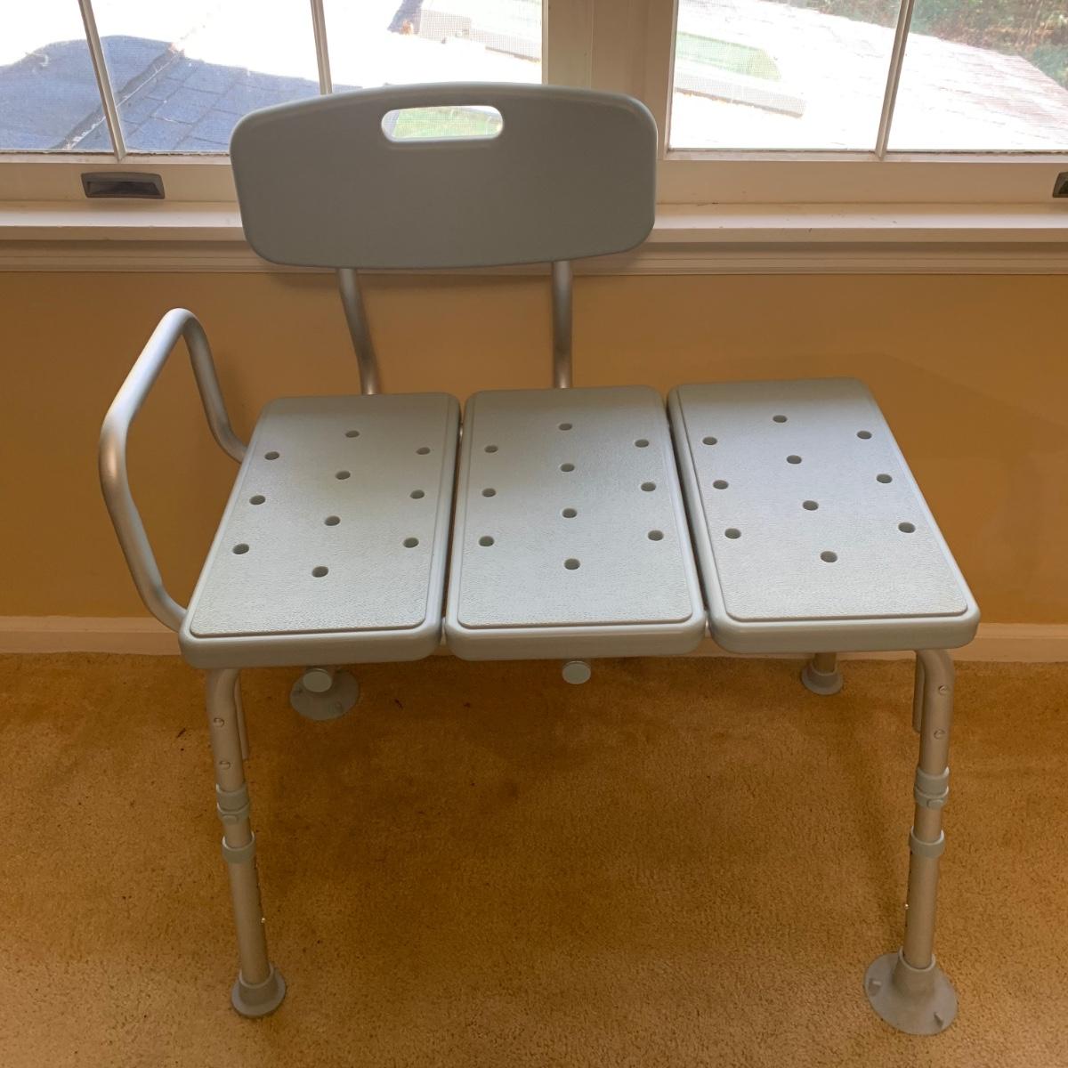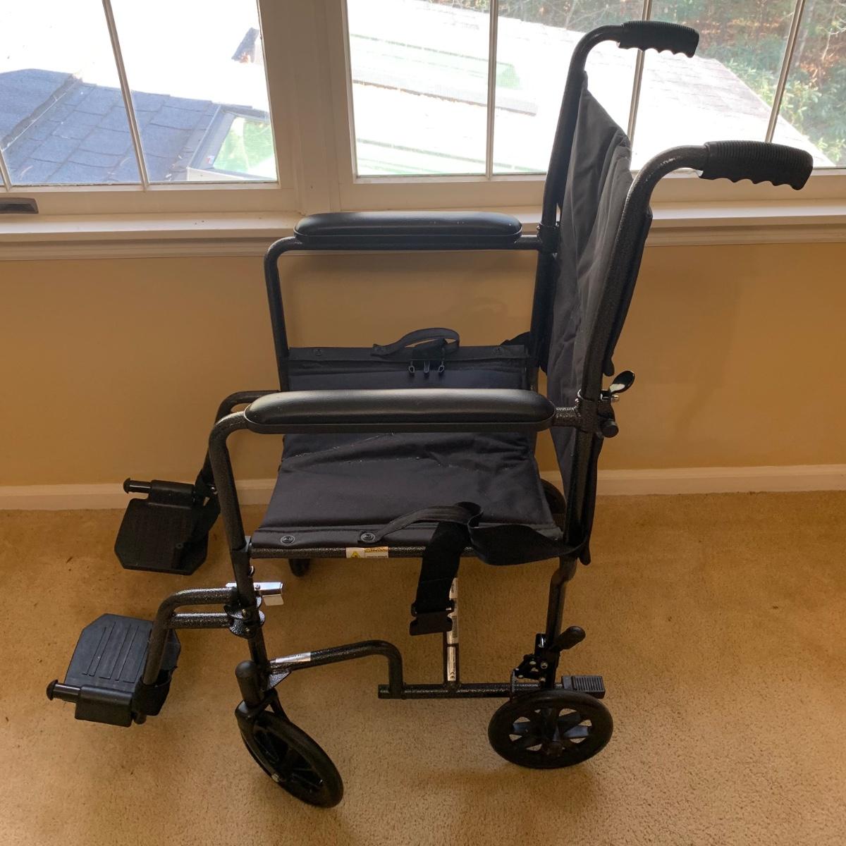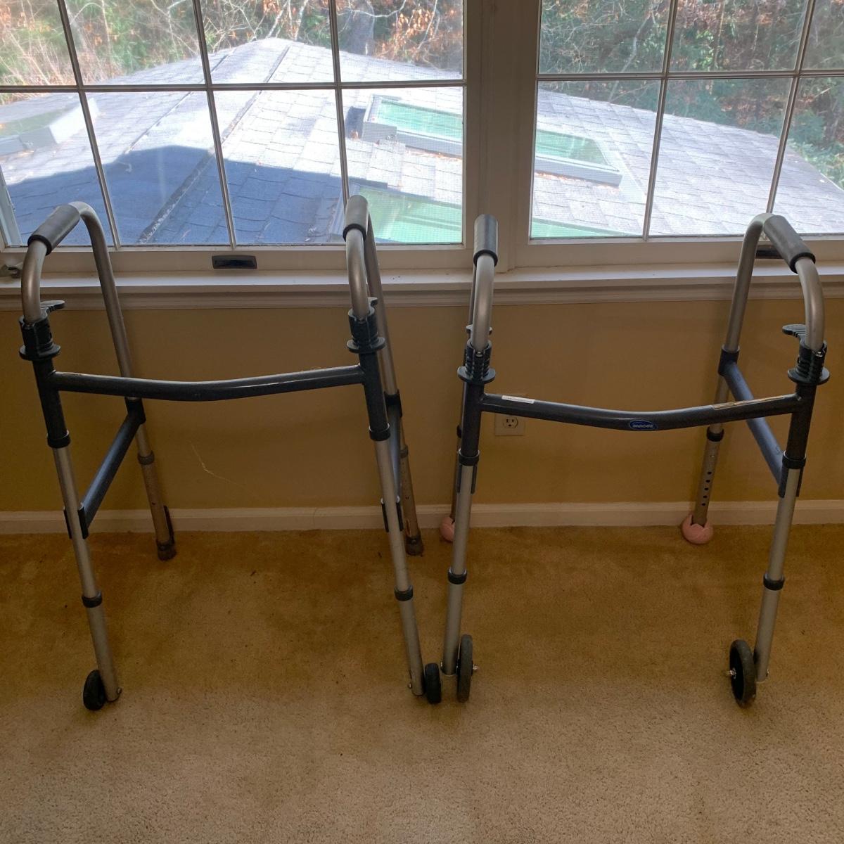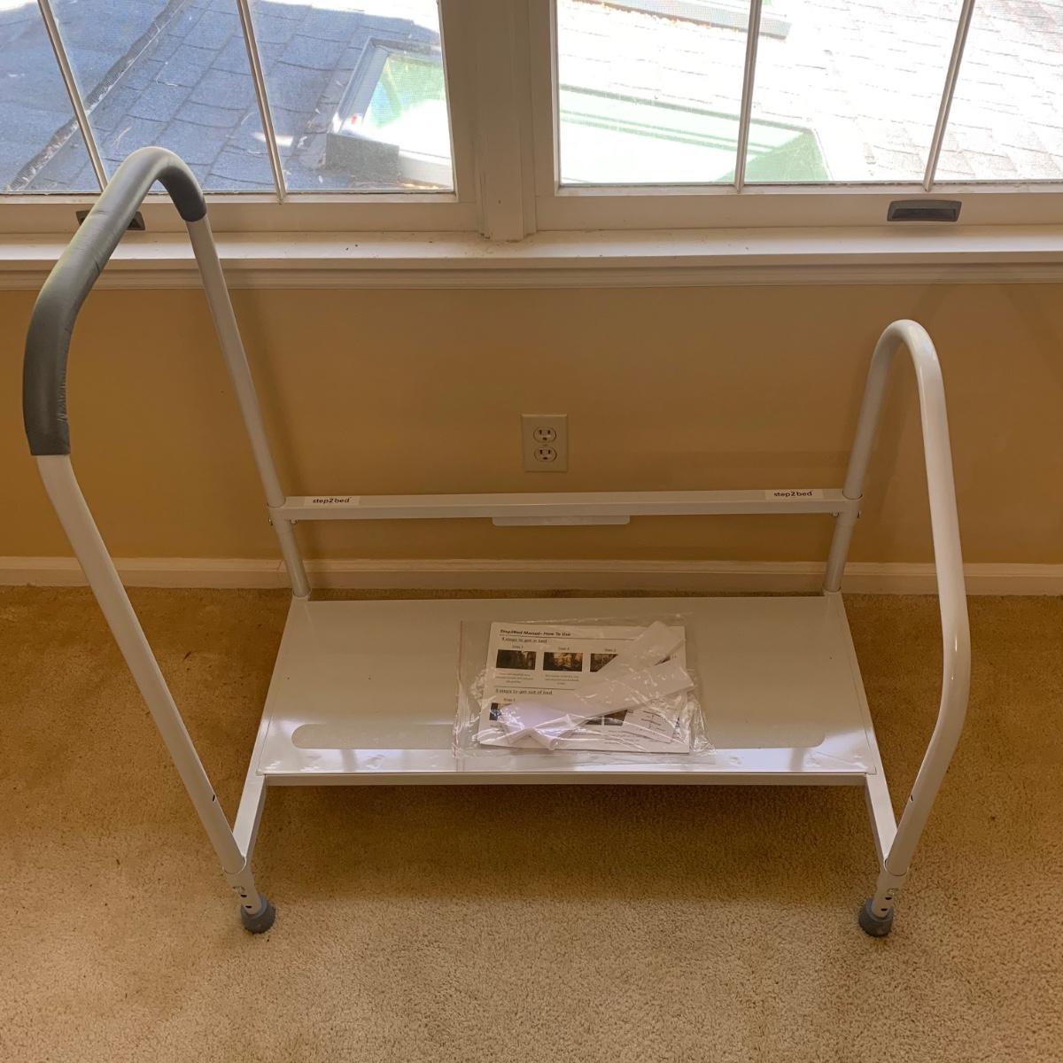 This medical device lot includes two walkers, a bedside commode, two gait belts, walking cane, a magnetic nightlight, blood pressure cuff, shower chair, suction-on handles, step 2 bed step ladder, Drive wheel chair, medical literature, and more! Brands include Medline, Drive, and more. Blood pressure cuff likely needs a new battery, otherwise lot is in good condition.