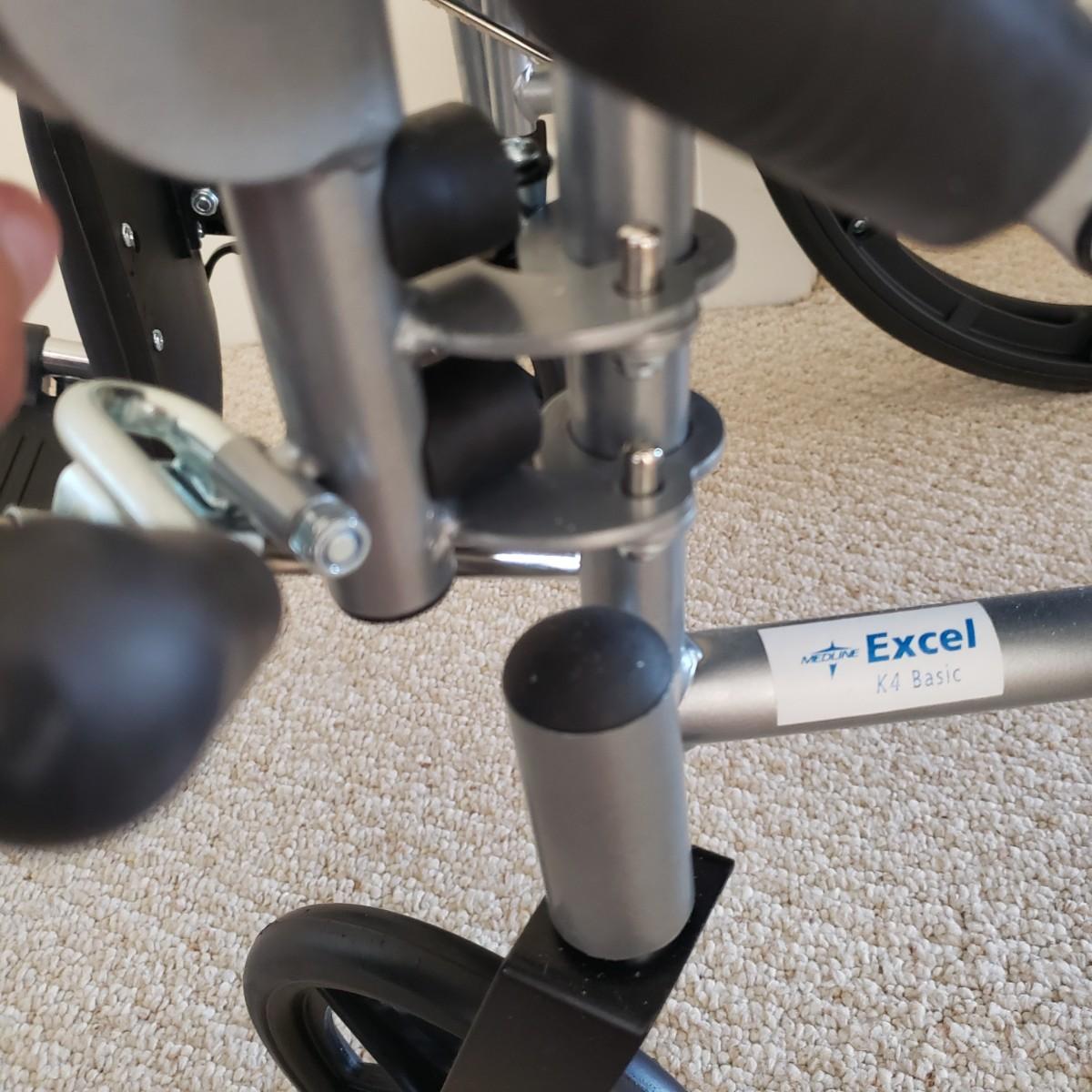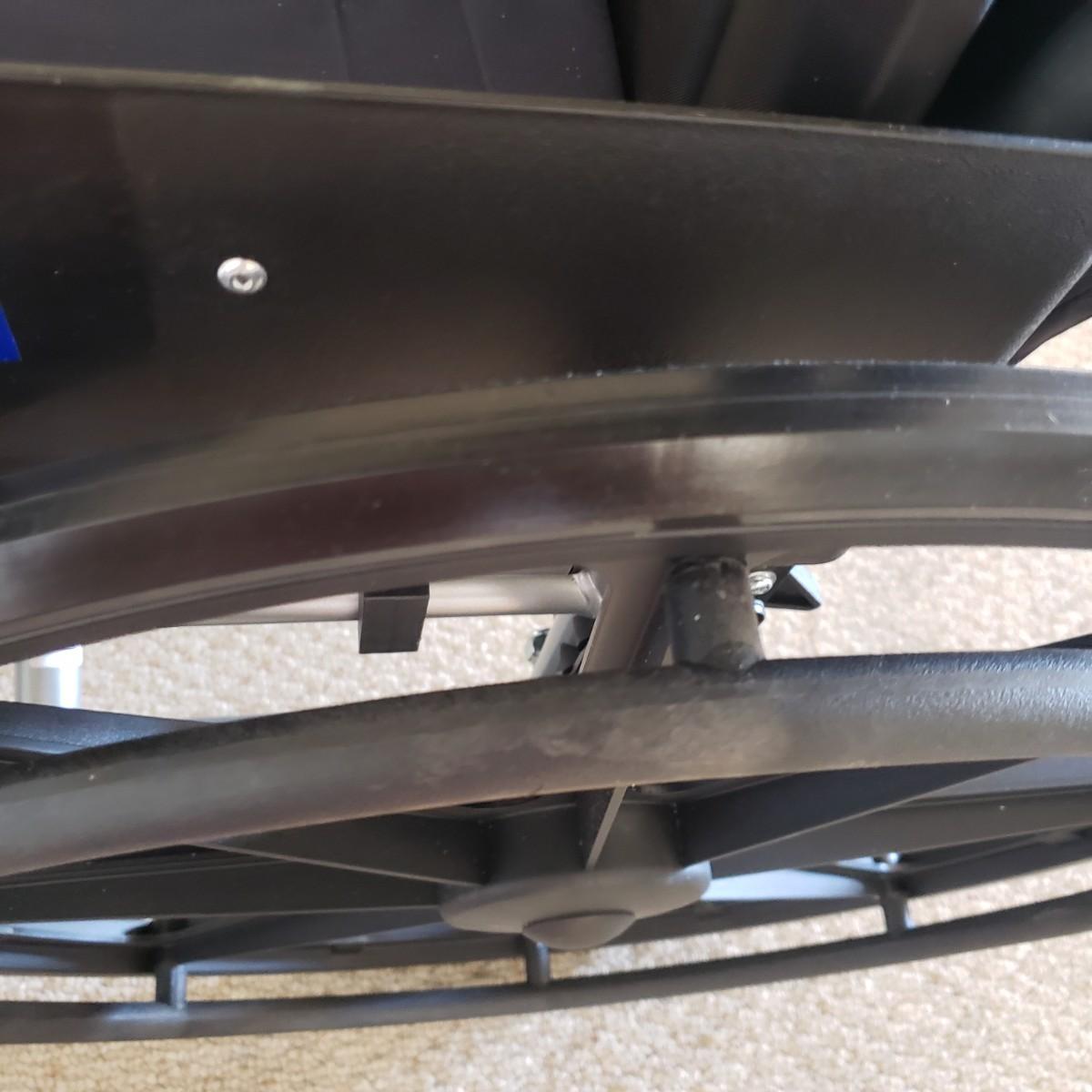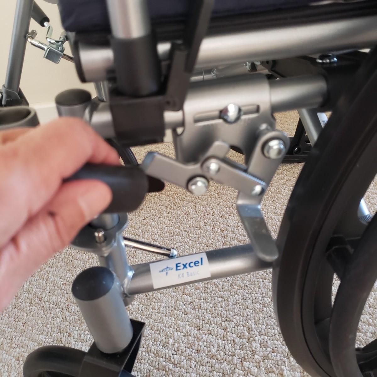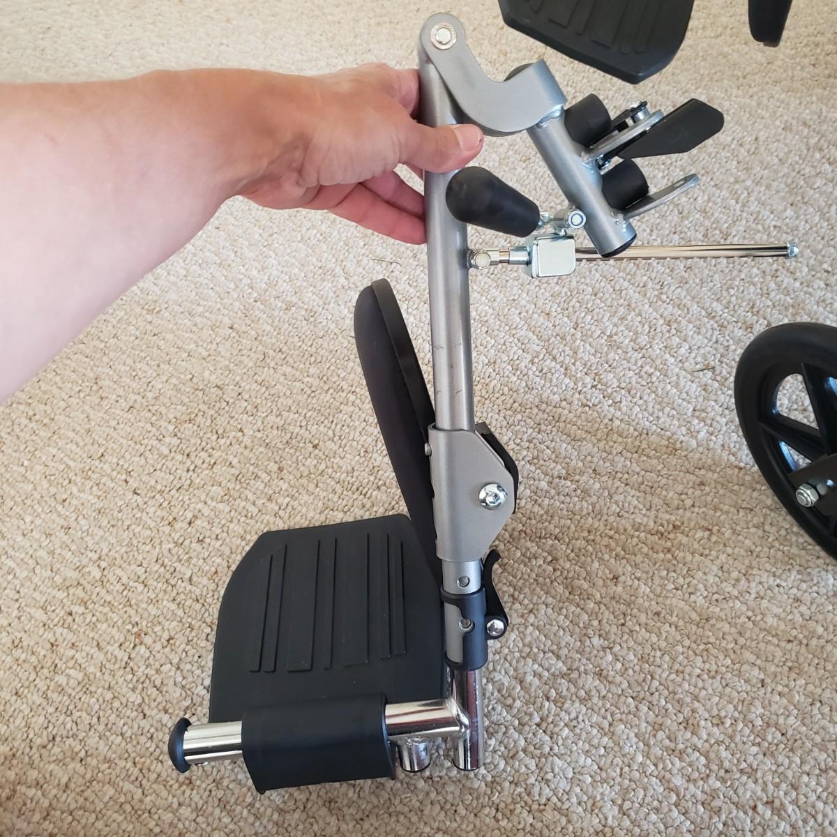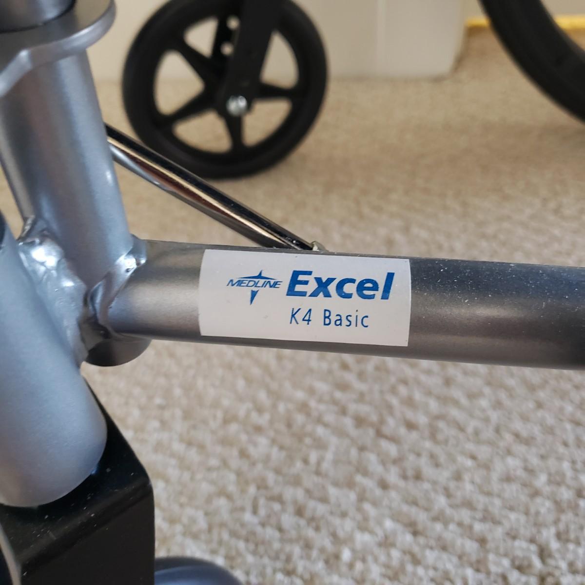 This is a Medline wheelchair. Chair comes with two removable foot rest and a nylon removable bag that hangs on handles. See pictures for measurements.