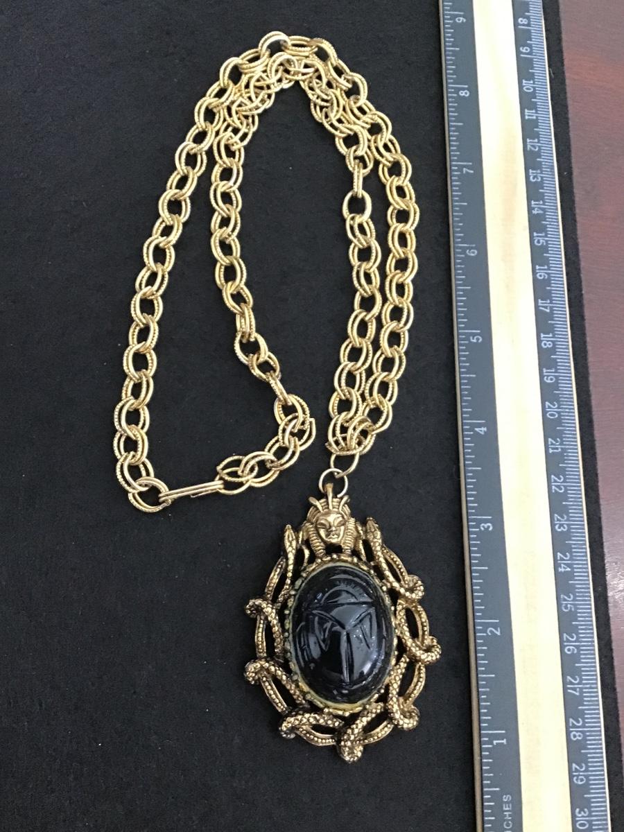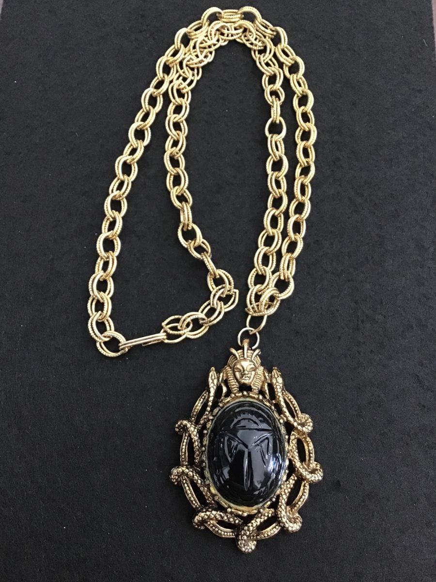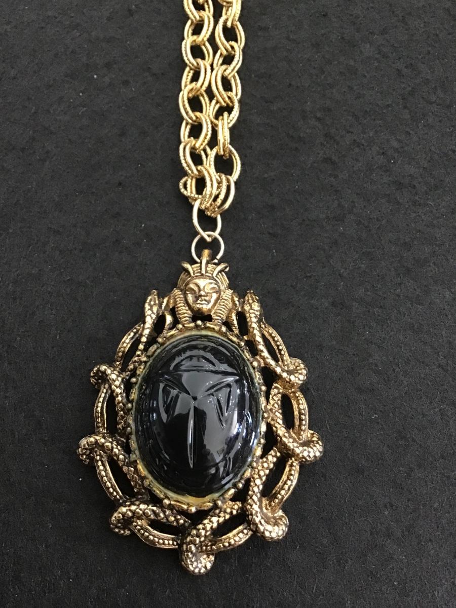 Medusa Cabochon Antique Gold Tone Statement Necklace