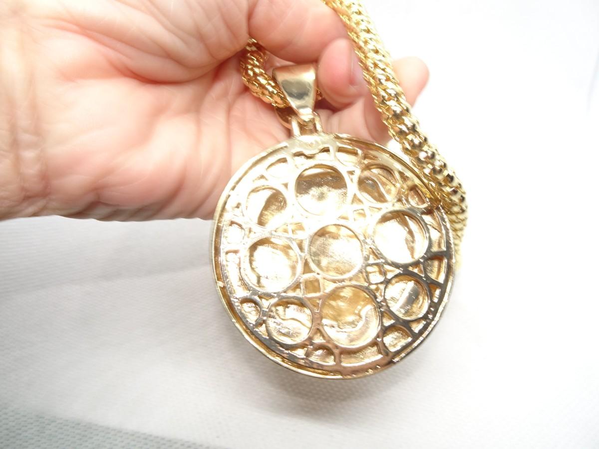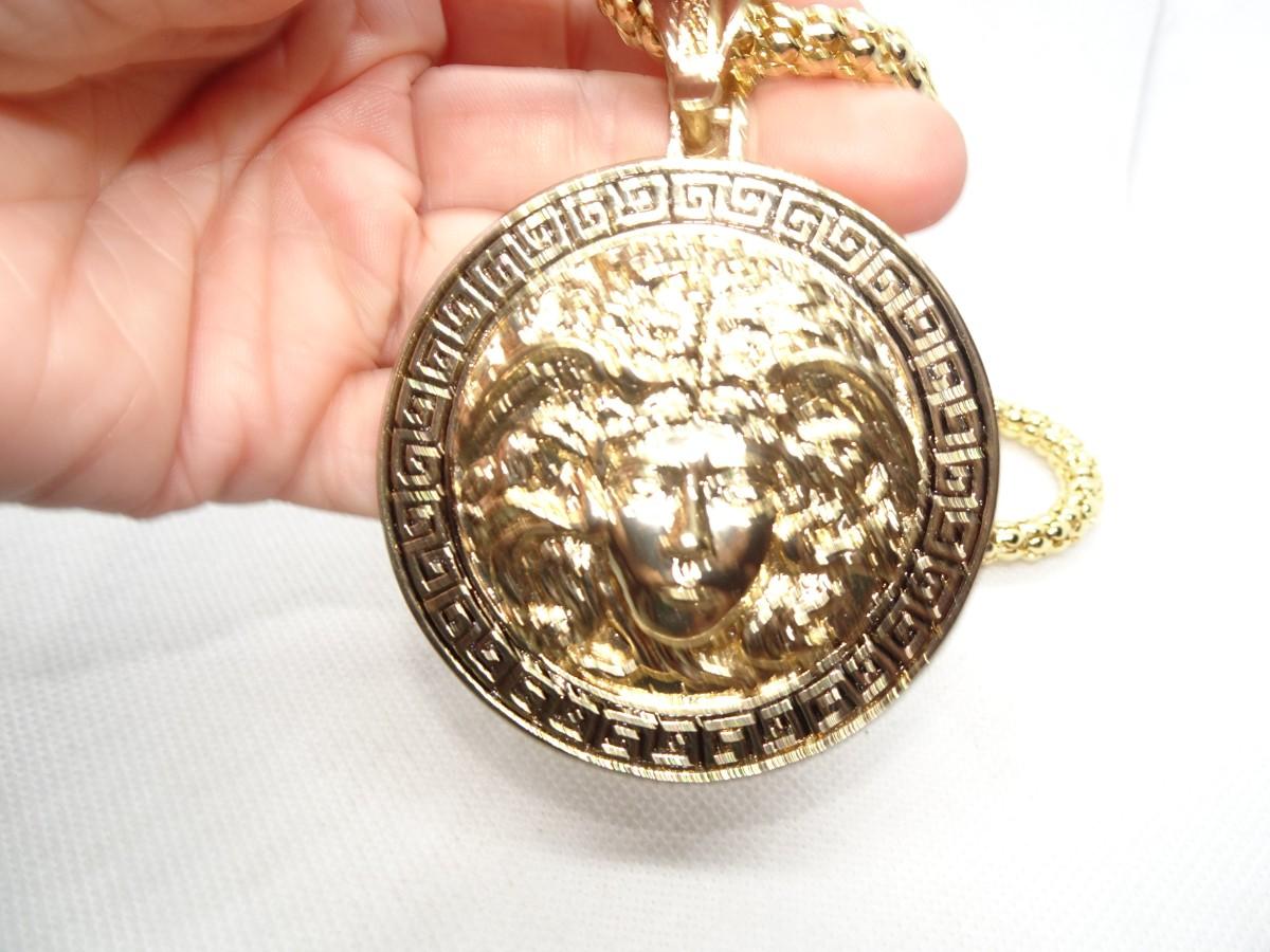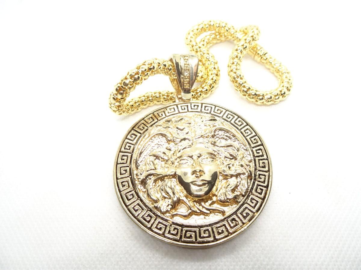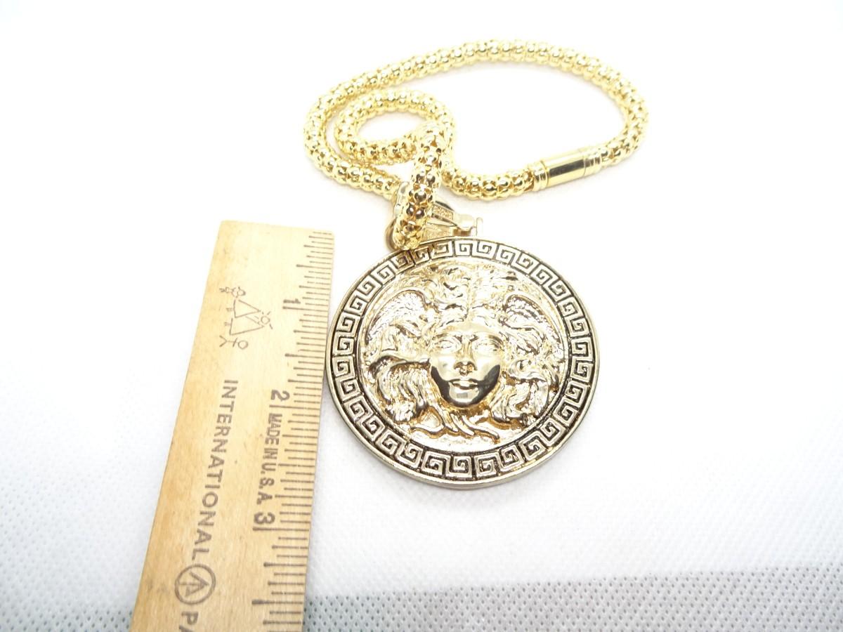 Medusa Head Coin Pendant, Gold Tone Pendant Necklace