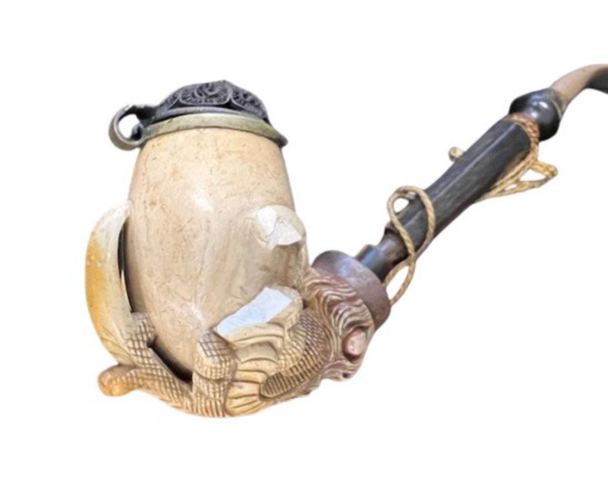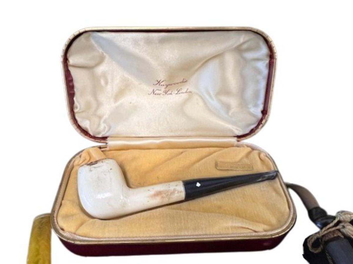 Makers include Kay Woodie, and more. Total of 4 pieces. Two have cases. The octopus pipe is missing pieces (pictured). Shipping dimensions: 11" x 8". [KA]