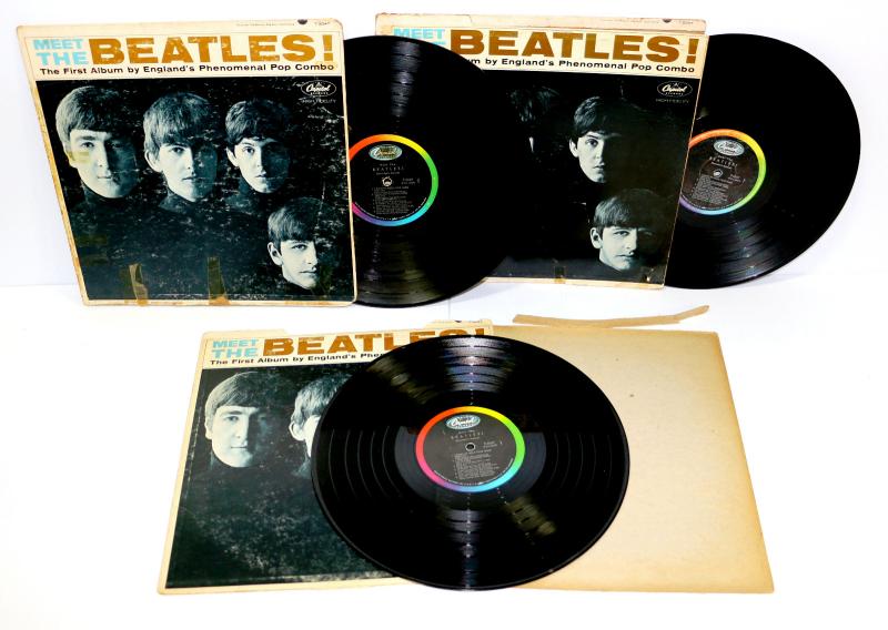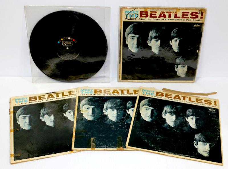 This lot features lower graded records and included are following: Original 1964 "Meet The Beatles" LP Records - there are 4 covers and 3 records, one cover has no record, also included are 2 additional The Beatles Records without covers, covers show significant wear, some records are better then the other, mixed lot - as seen on pictures.