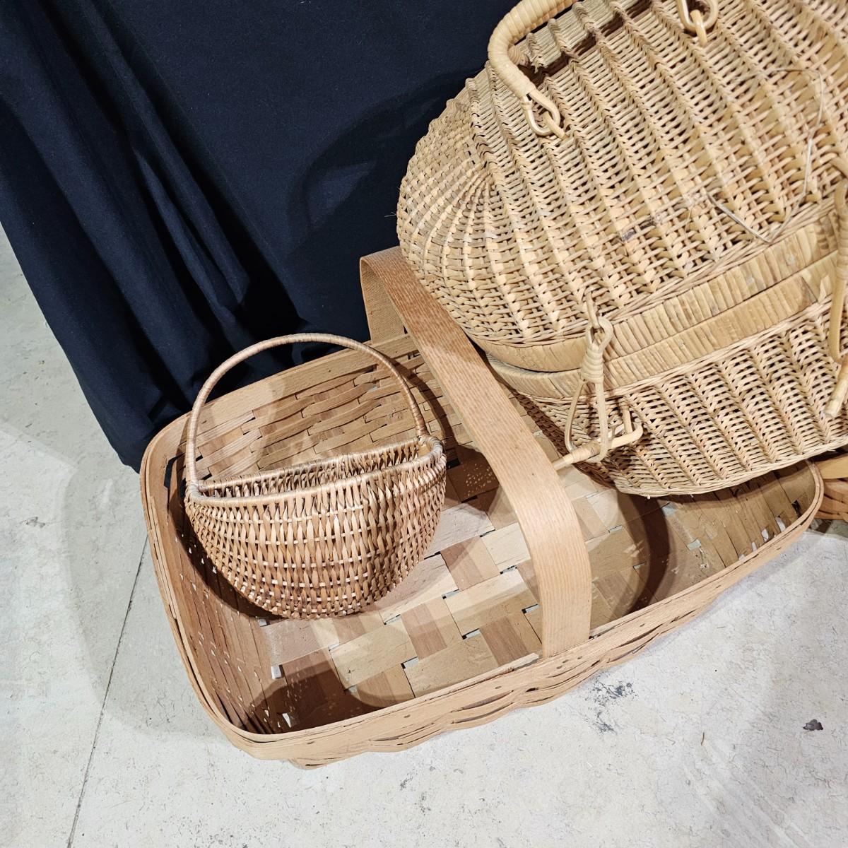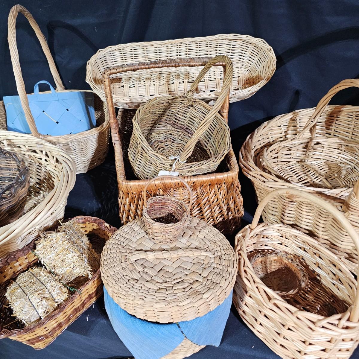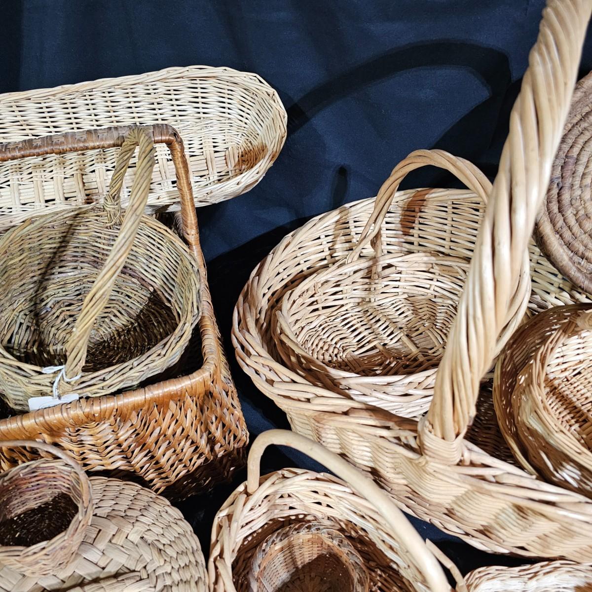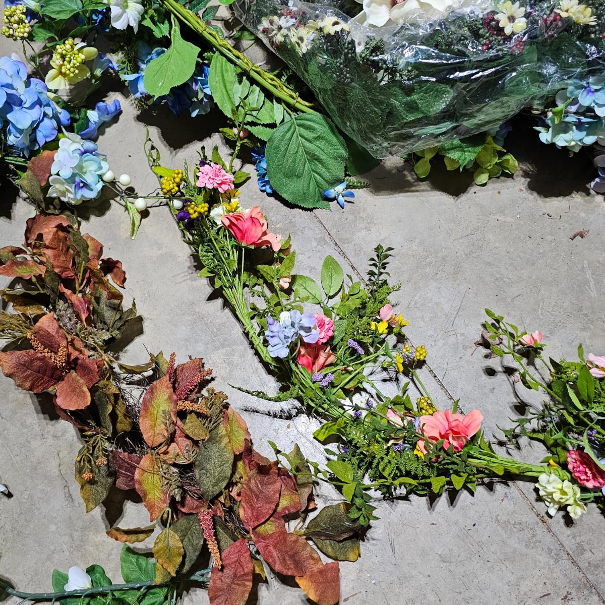 Huge mixture of garlands, candle rings, sprigs and more, plus baskets! Ivy, daisies, apples, and lots of others. Two centerpiece candle sets with flameless candles, battery operated, untested. Lot includes two dozen baskets of different shapes and sizes. Rattan and split wood styles, some with handles, and more. Basket in last photo measures 14” x 16” x 16”H. See photos for details. Local pickup only. This is a very large lot. Please plan accordingly for transportation.