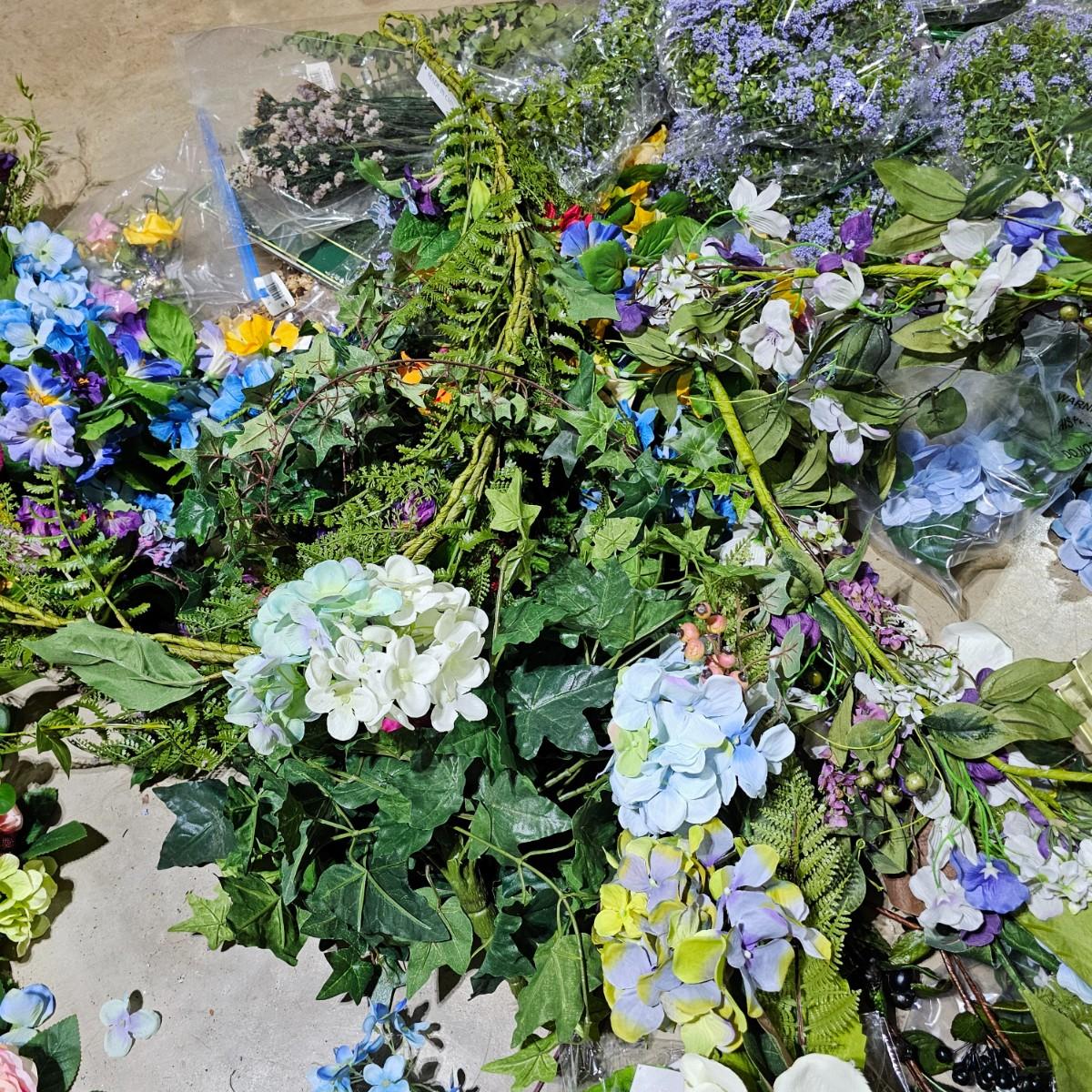 Mega Assortment of Artificial Spring Flowers & Garlands with Baskets (B1-JS)