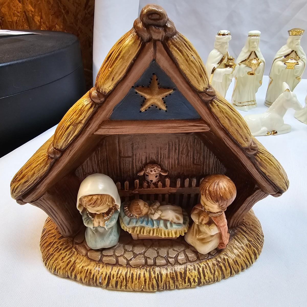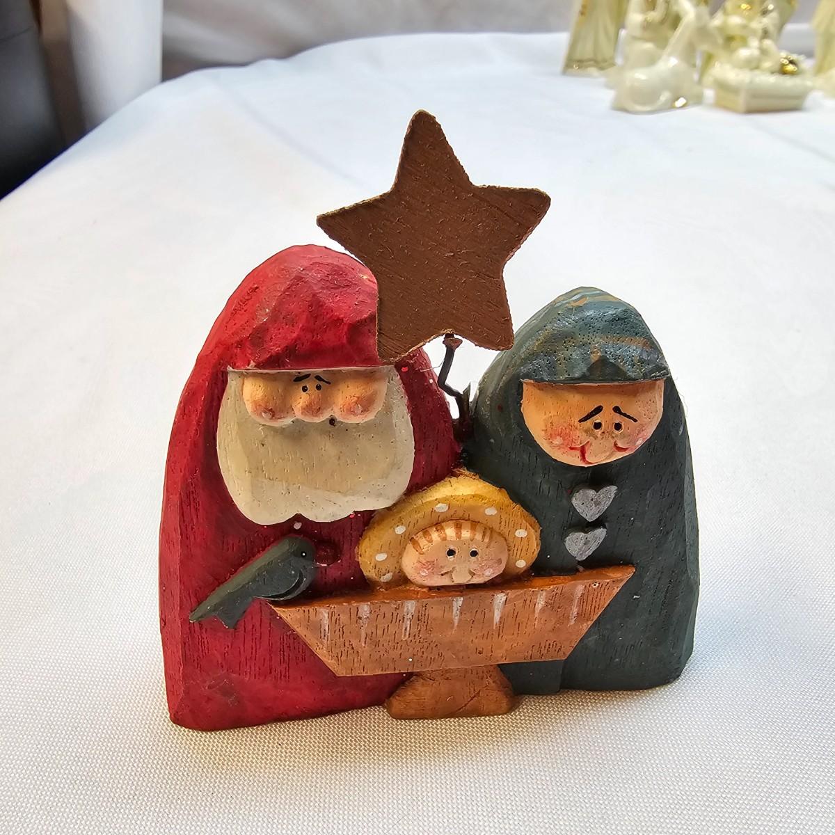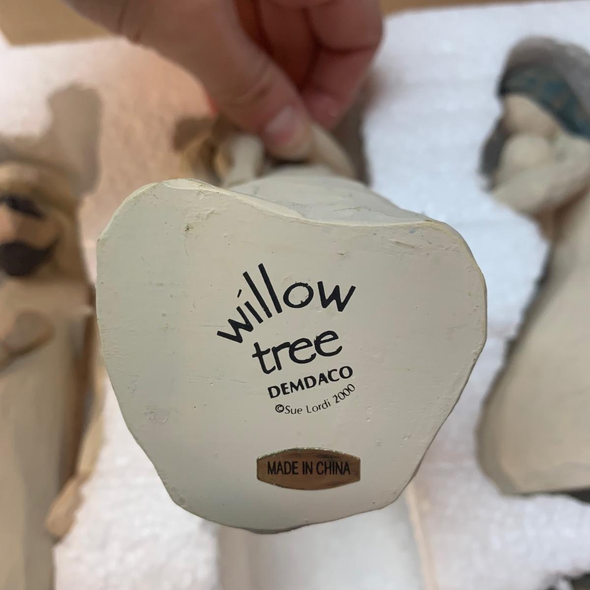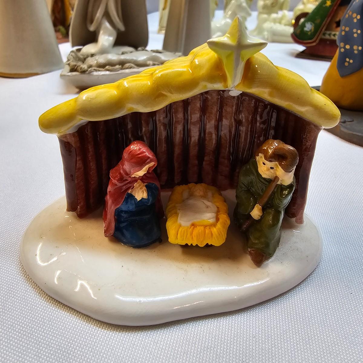 Twenty-seven examples of the Nativity. China, wood, porcelain, salt dough, all different sizes and shapes. Items by Hallmark, Willow Tree and others. Many items handmade. Sizes range from just over an inch tall to 9.5" H for the Willow Tree Demdaco Joseph. See photos for details. Shipping available.