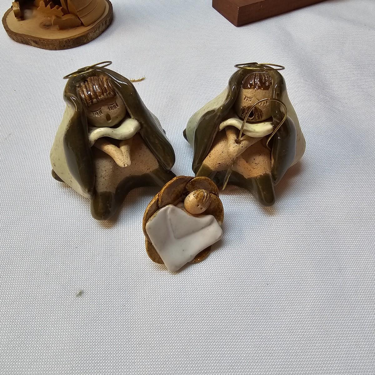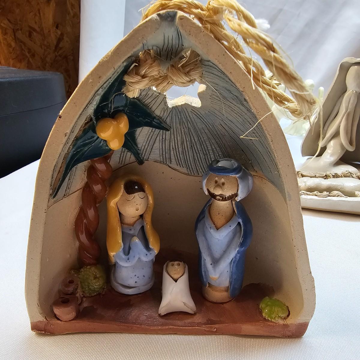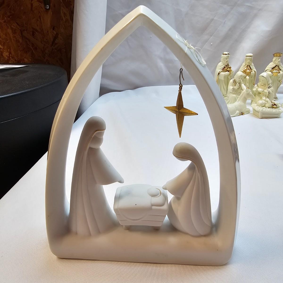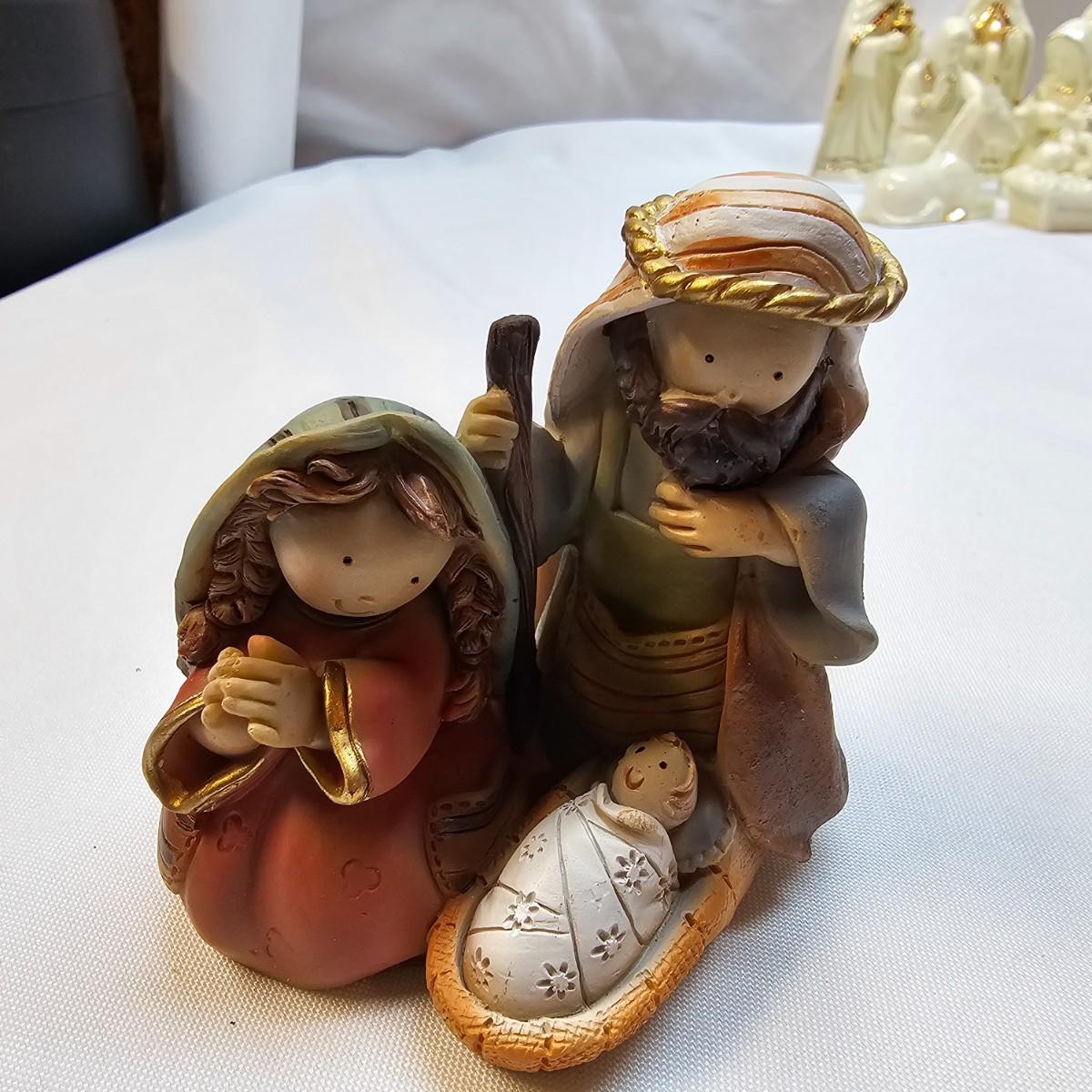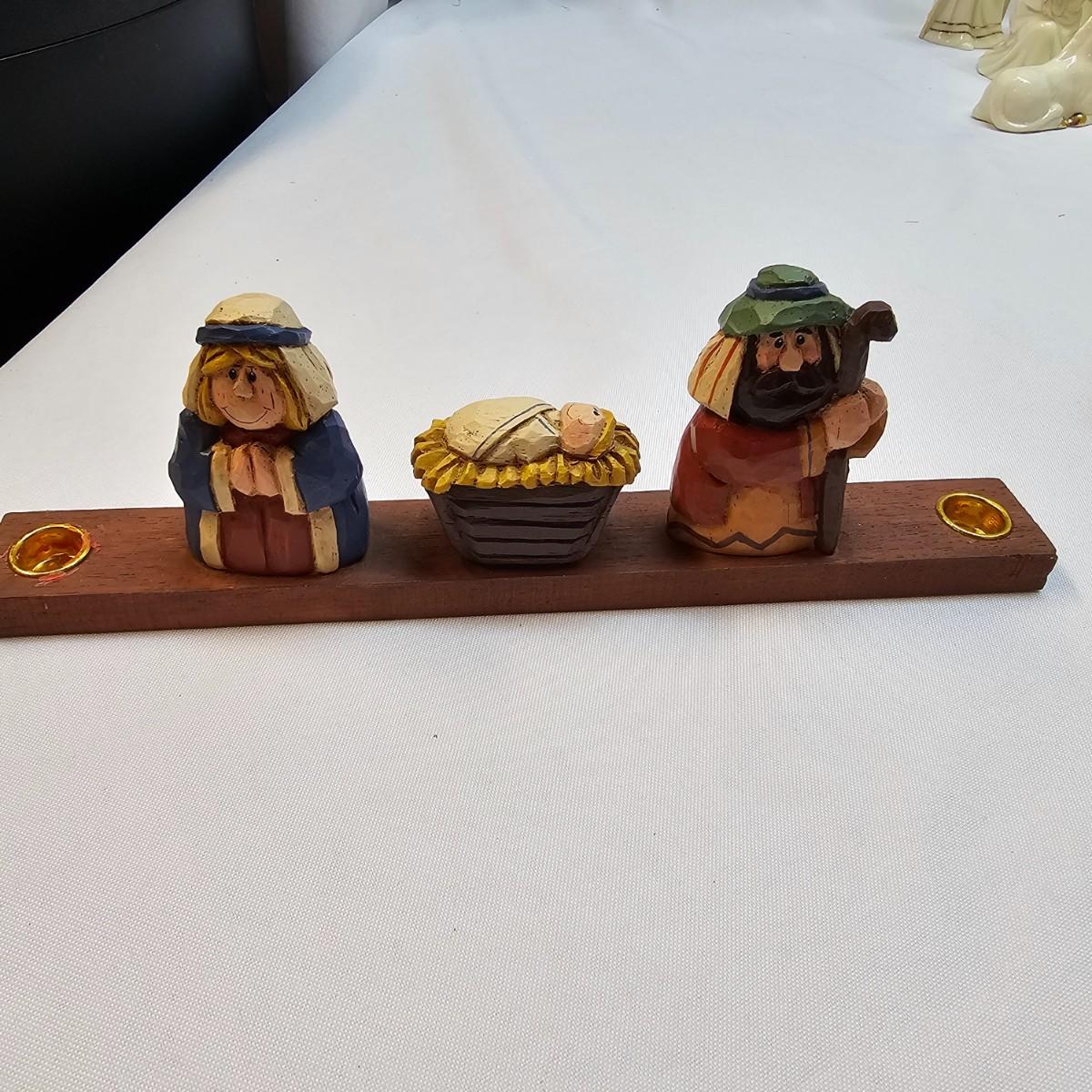Twenty-seven examples of the Nativity. China, wood, porcelain, salt dough, all different sizes and shapes. Items by Hallmark, Willow Tree and others. Many items handmade. Sizes range from just over an inch tall to 9.5" H for the Willow Tree Demdaco Joseph. See photos for details. Shipping available.
