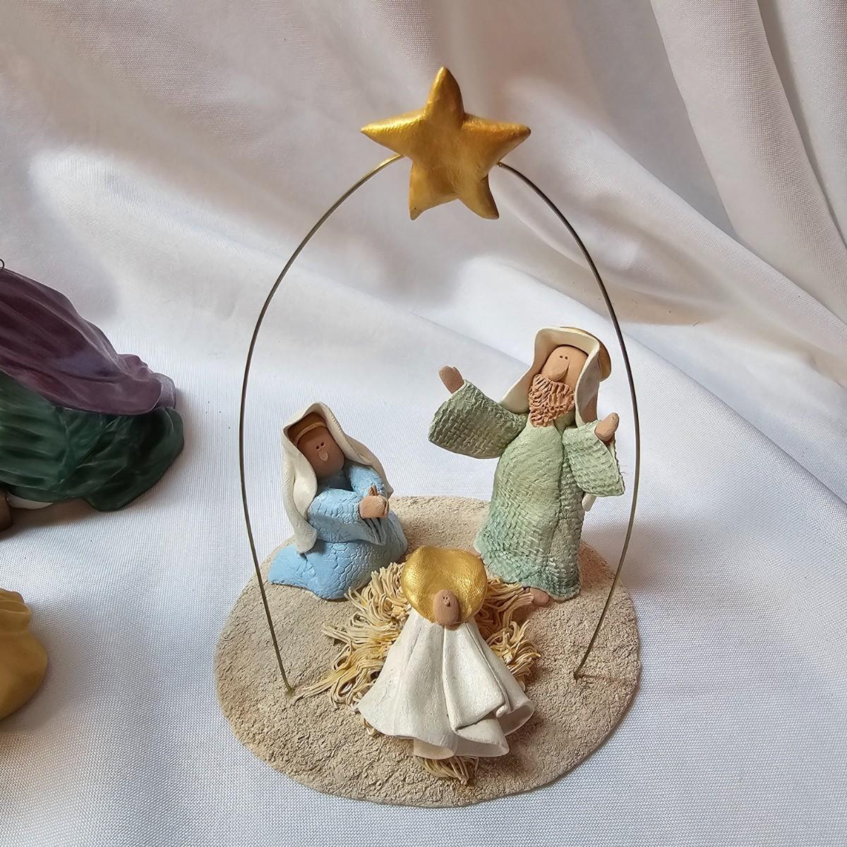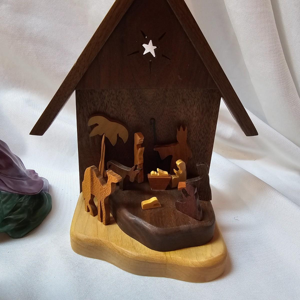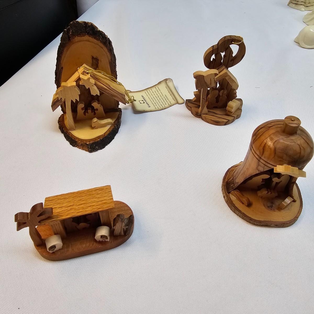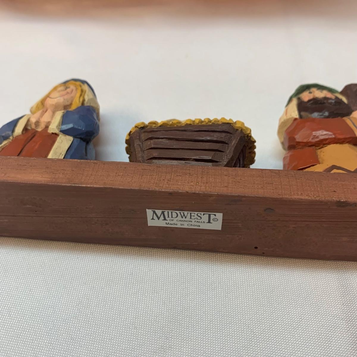 Twenty-seven examples of the Nativity. China, wood, porcelain, salt dough, all different sizes and shapes. Items by Hallmark, Willow Tree and others. Many items handmade. Sizes range from just over an inch tall to 9.5" H for the Willow Tree Demdaco Joseph. See photos for details. Shipping available.